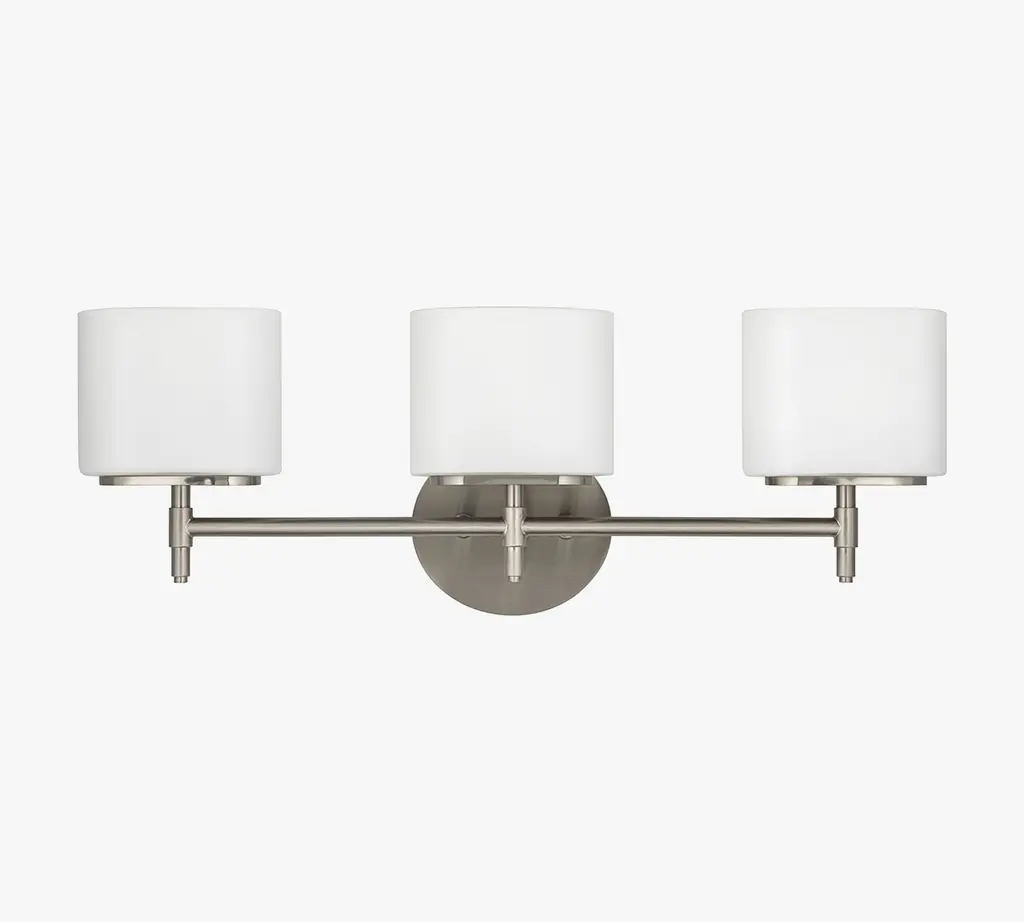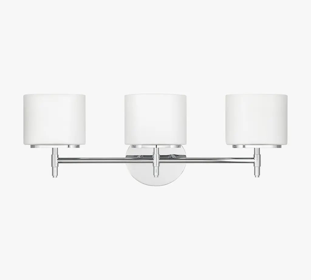 Handsome and timeless, the matte opal glass (ideal for diffusing light) is countered by the polished metal base and slim, linear mount bar. It's a salute to minimalist style that is perfect for creating a simple, spa-like space.