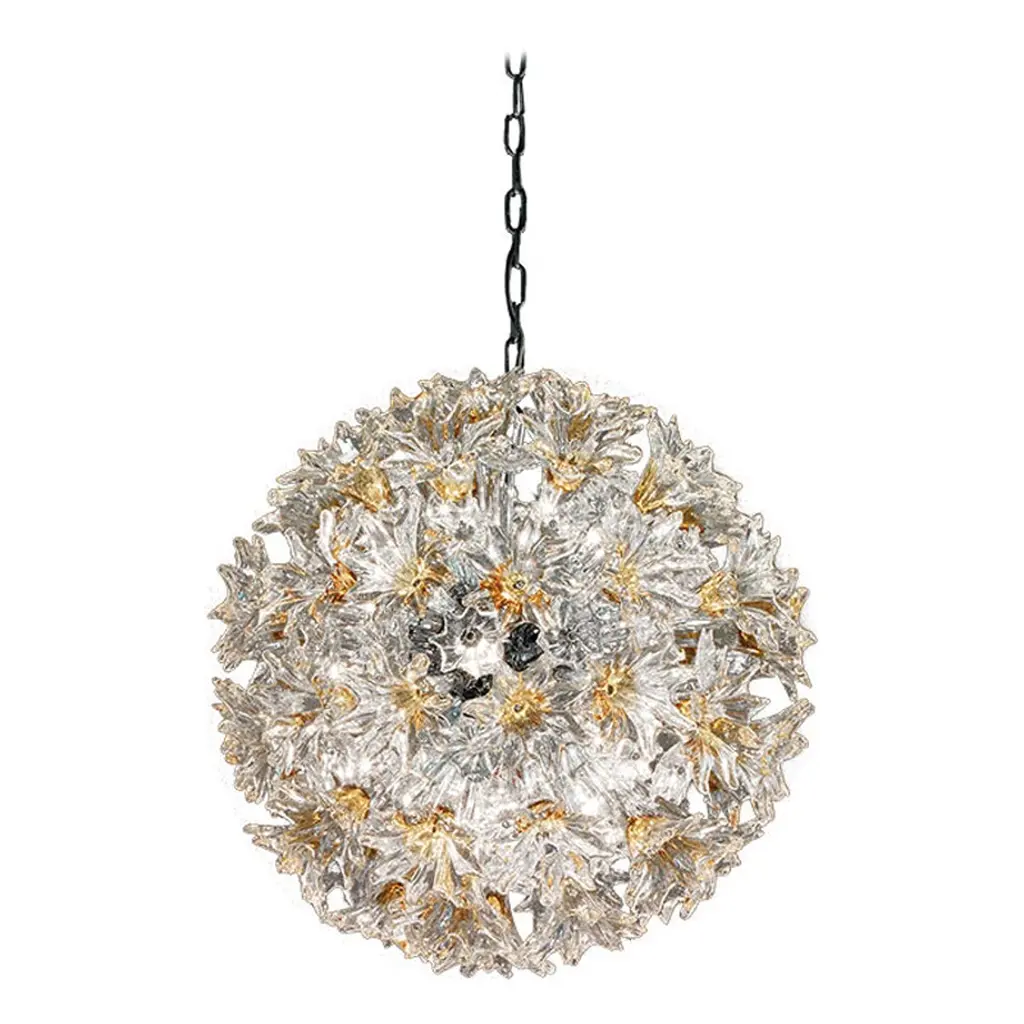 The Bloom New lamp family with its elliptical shape and distinctive original structure covered by sparkling polycarbonate flowers as pure and precious as crystal comes in, wall light. As delicate as a spring bouquet, Bloom lights offer new and sophisticated multi-color nuances in lavender and mint or an elegant transparent white monochrome. A series of little lights located within the frame beams the light shafts through the flowers to refract on the multifaceted surfaces of the petals and multiply a thousand reflections, s0 which is perfect for both home and public environments for a touch of elegance and dazzle. This version can stand alone to create splendid lighting compositions. Assembly required. Voltage: 120.