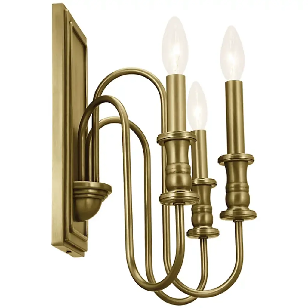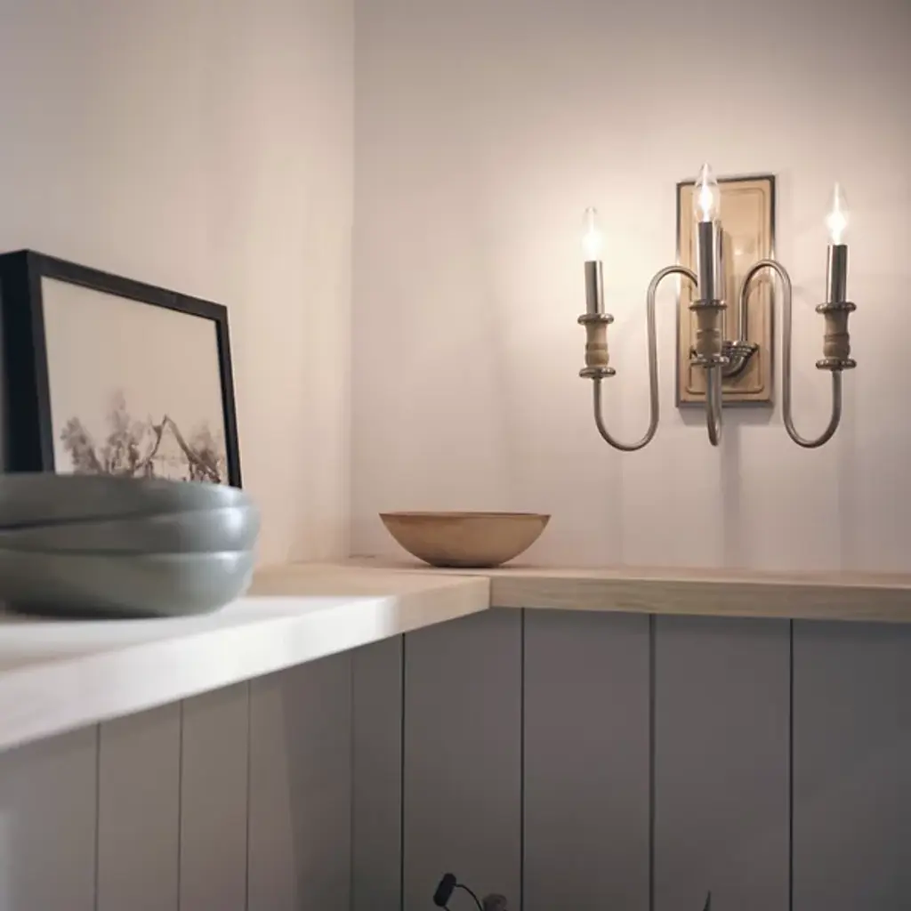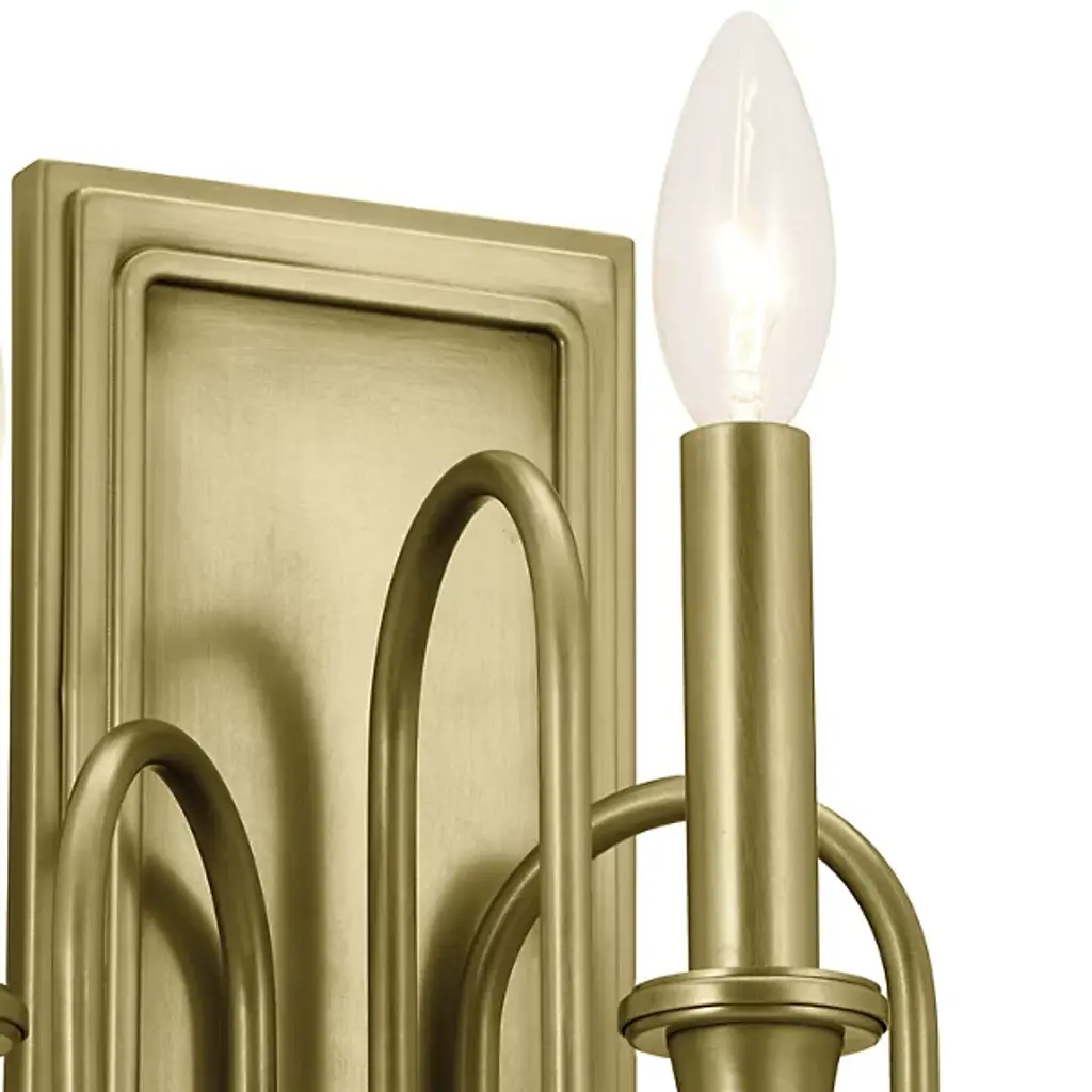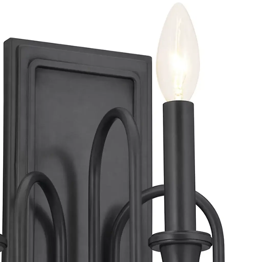 Give your home a palatial look with the Karthe Wall Sconce by Kichler. A collection of flame-shaped bulbs rests atop steel encasements supported by pedestal-shaped addendums. The sconce’s bulbs give your hall or entryway a pleasant glow. This sconce is secured by a rectangular baseplate at your wall. The baseplate’s metalwork takes on a portrait-like shape, with intricate detailing around its edges. The picture-like appearance of this baseplate nicely complements the looping arms collected in the sconce’s basin-style casing.