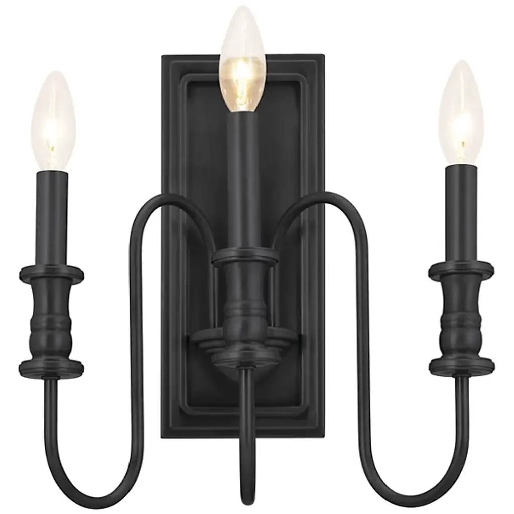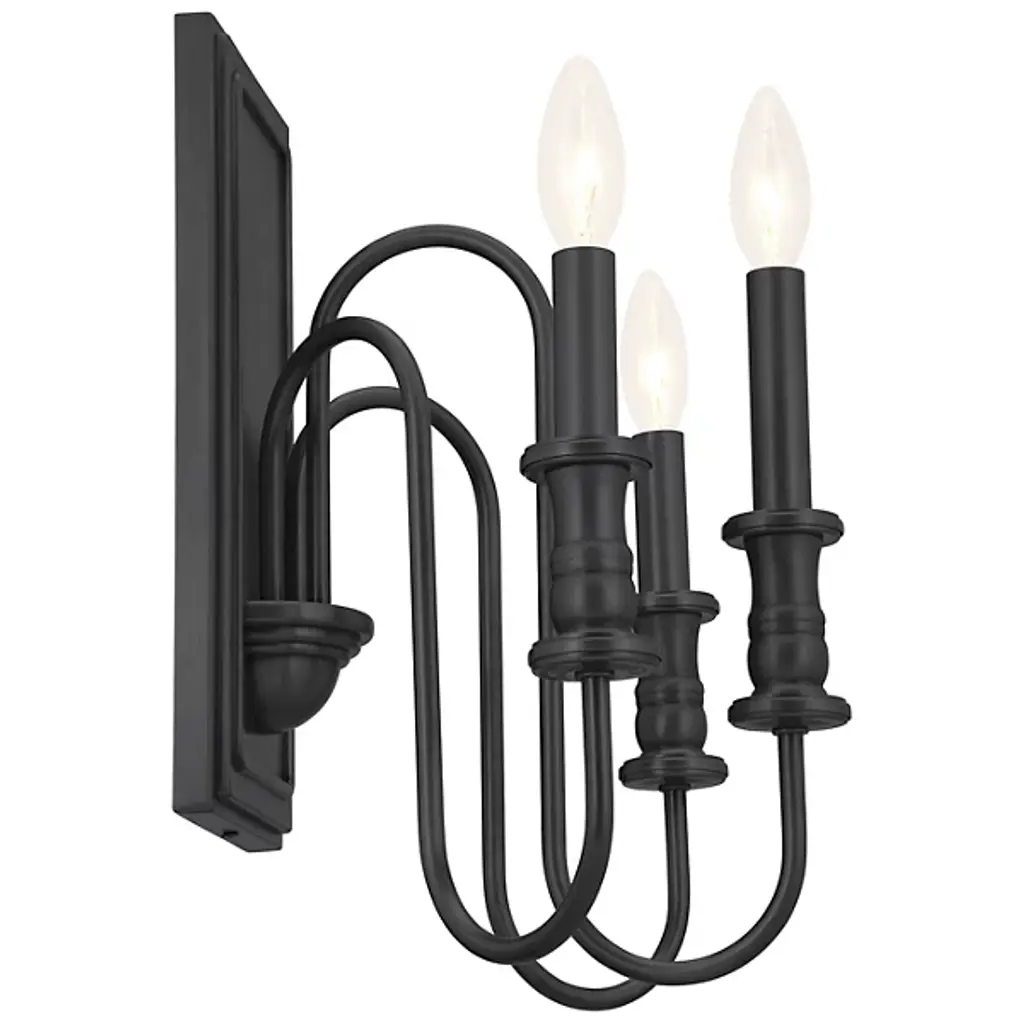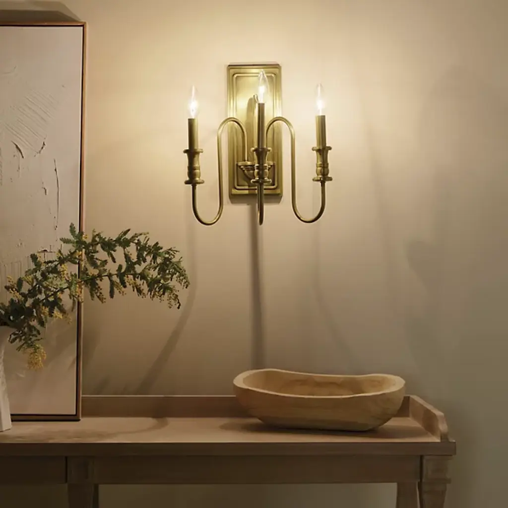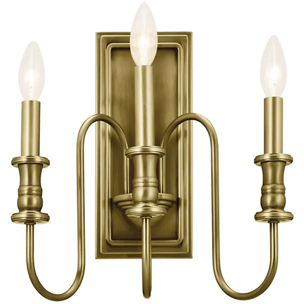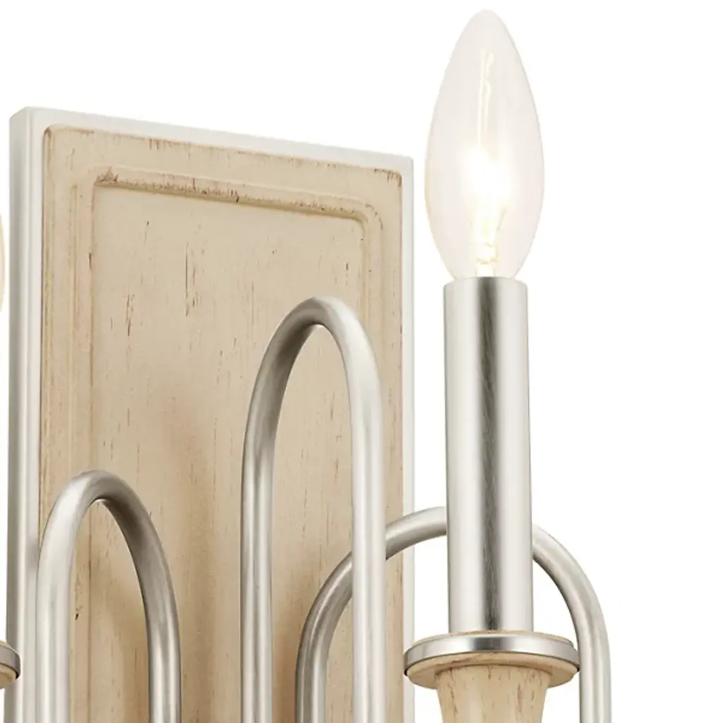 Give your home a palatial look with the Karthe Wall Sconce by Kichler. A collection of flame-shaped bulbs rests atop steel encasements supported by pedestal-shaped addendums. The sconce’s bulbs give your hall or entryway a pleasant glow. This sconce is secured by a rectangular baseplate at your wall. The baseplate’s metalwork takes on a portrait-like shape, with intricate detailing around its edges. The picture-like appearance of this baseplate nicely complements the looping arms collected in the sconce’s basin-style casing.
