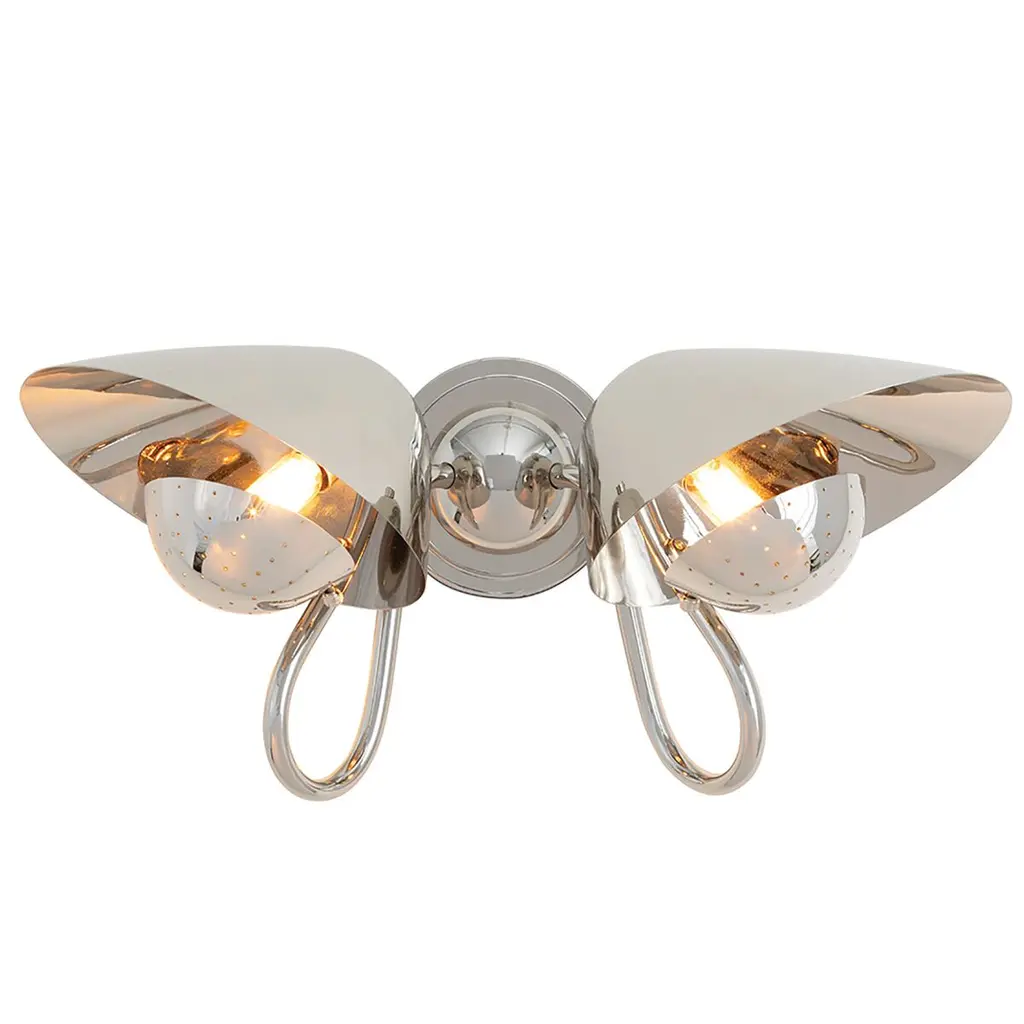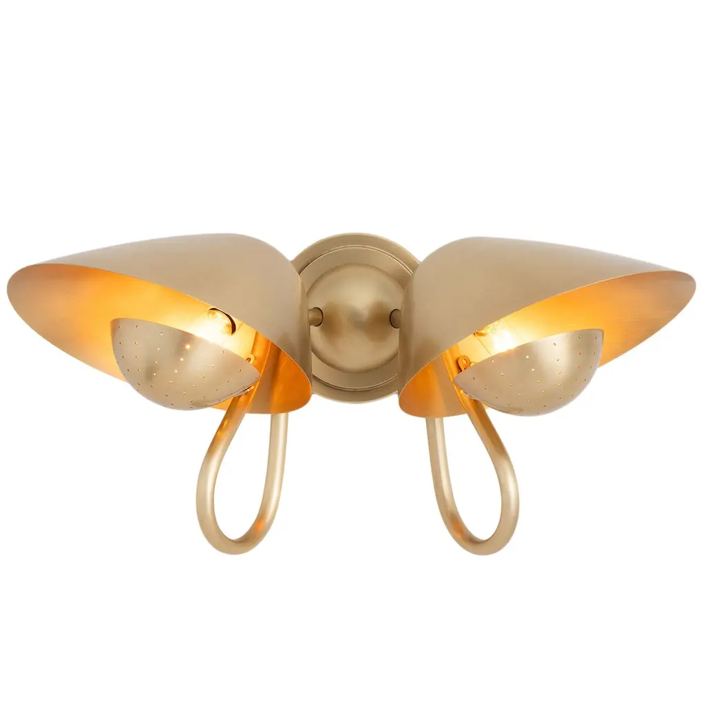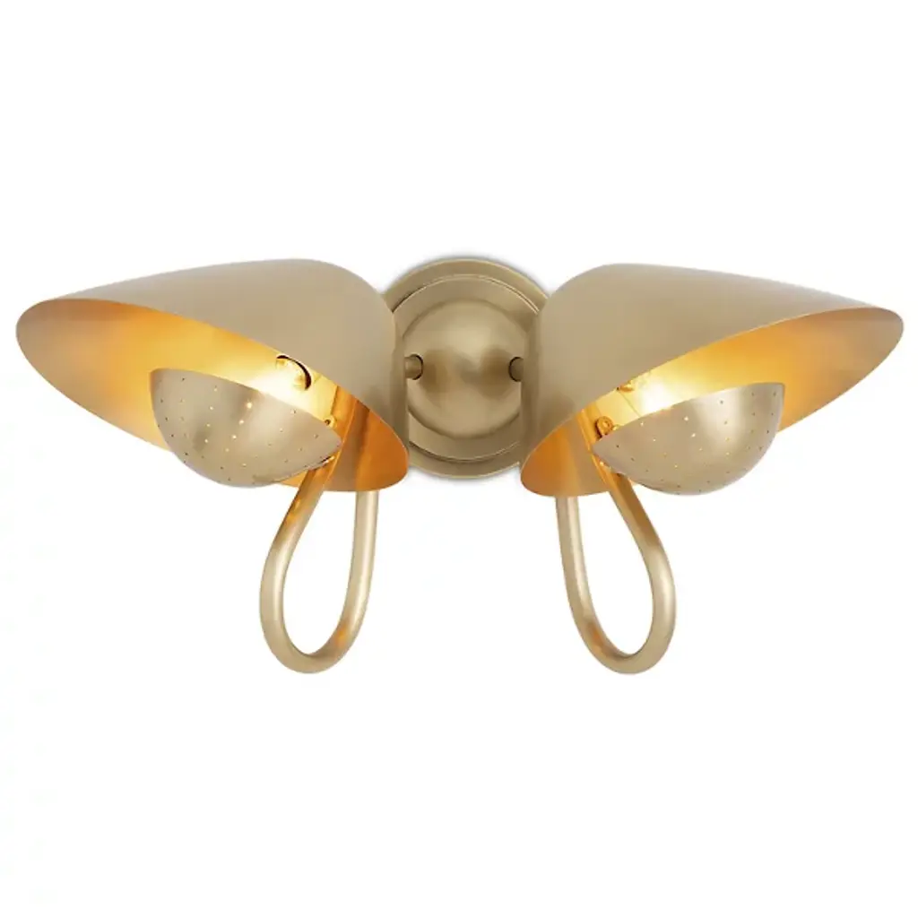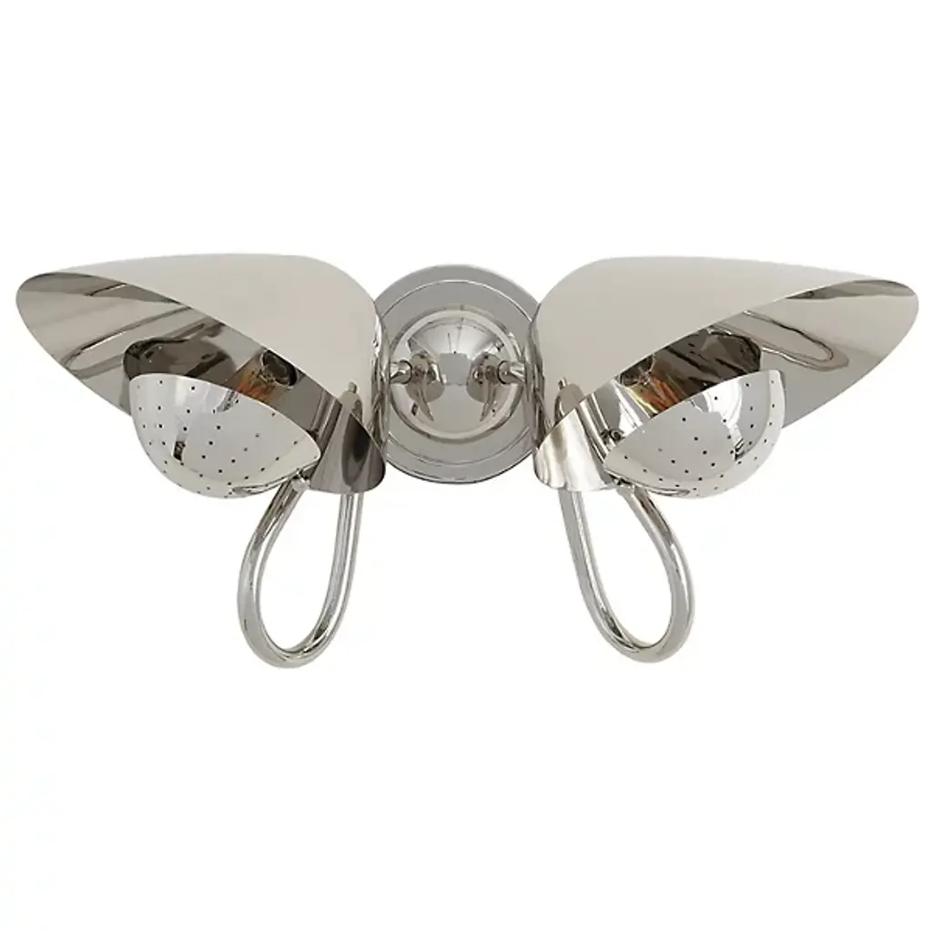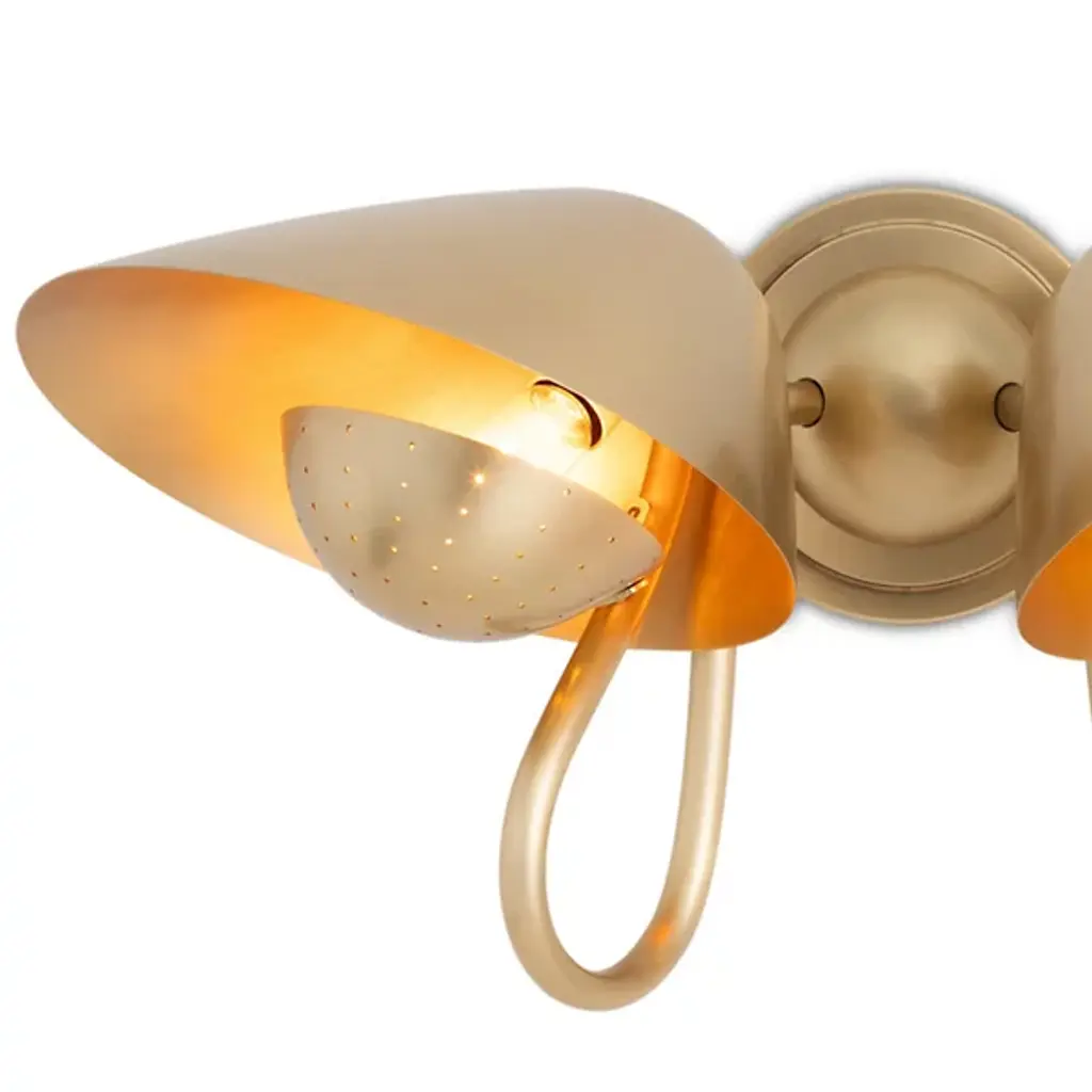 The Keaton Double Wall Sconce from Regina Andrew combines retro charm with timeless elegance, making it an ideal addition to small personal spaces such as home offices or powder rooms. This stylish sconce features a perforated metal diffuser that provides soft, ambient lighting, casting delicate patterns that enhance the warmth and character of any room. With its unique design and gentle illumination, this wall sconce adds sophistication and functionality to your interior décor.