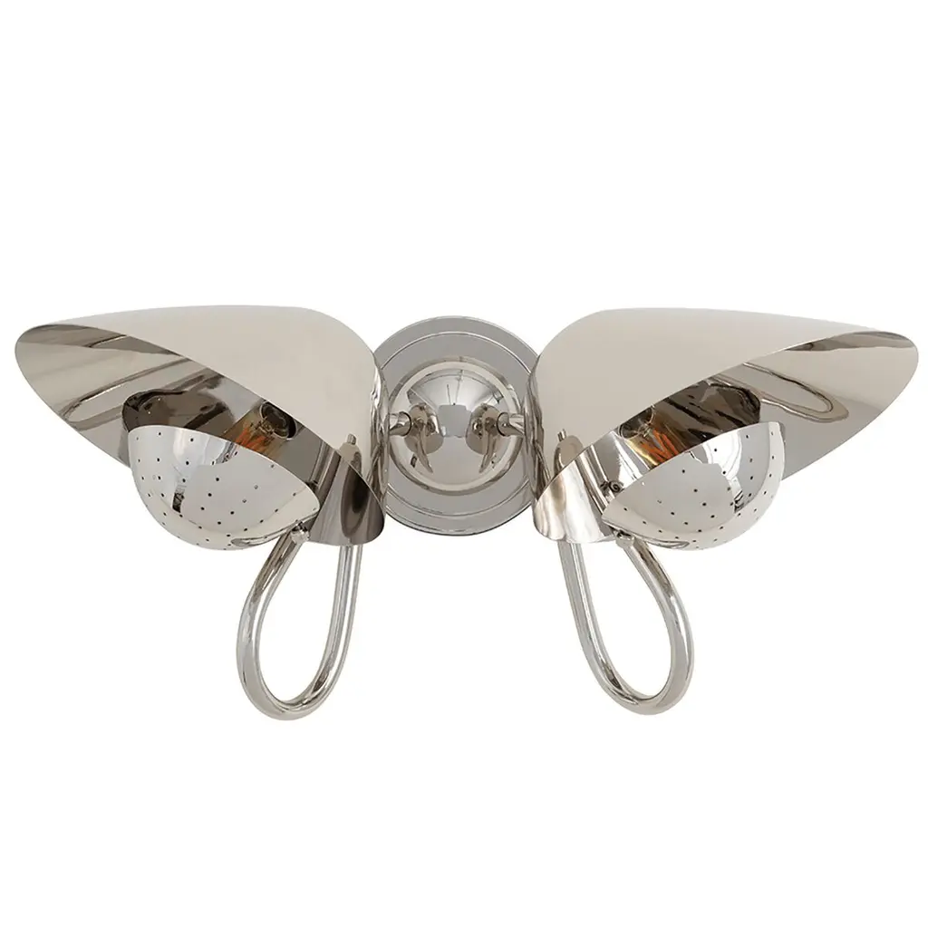 The Keaton Double Sconce is a blend of retro charm and timeless elegance. Perfect for small personal areas like home offices or powder rooms, it features a perforated metal diffuser for soft illumination, casting delicate lighting patterns and adding warmth and character to the room.