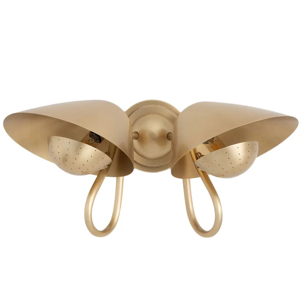 The Keaton Double Sconce is a blend of retro charm and timeless elegance. Perfect for small personal areas like home offices or powder rooms, it features a perforated metal diffuser for soft illumination, casting delicate lighting patterns and adding warmth and character to the room.