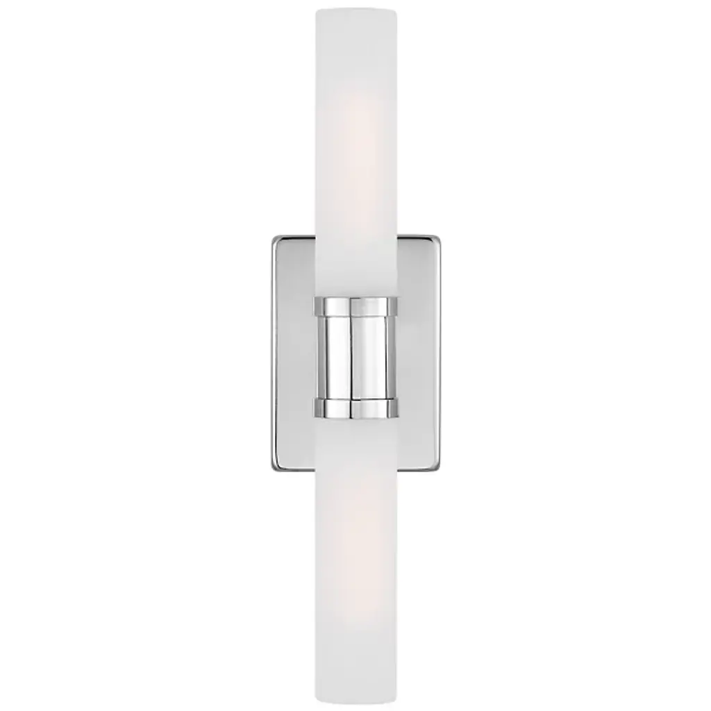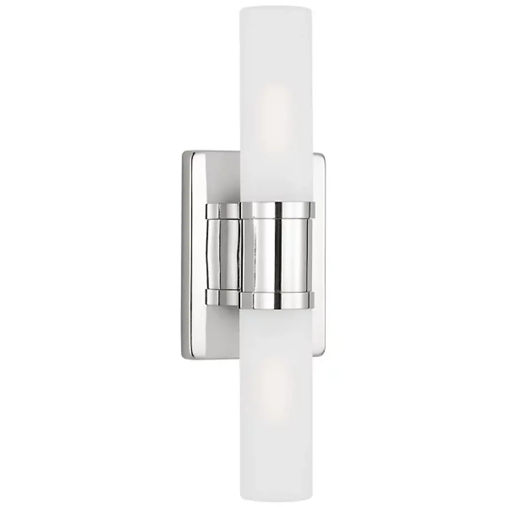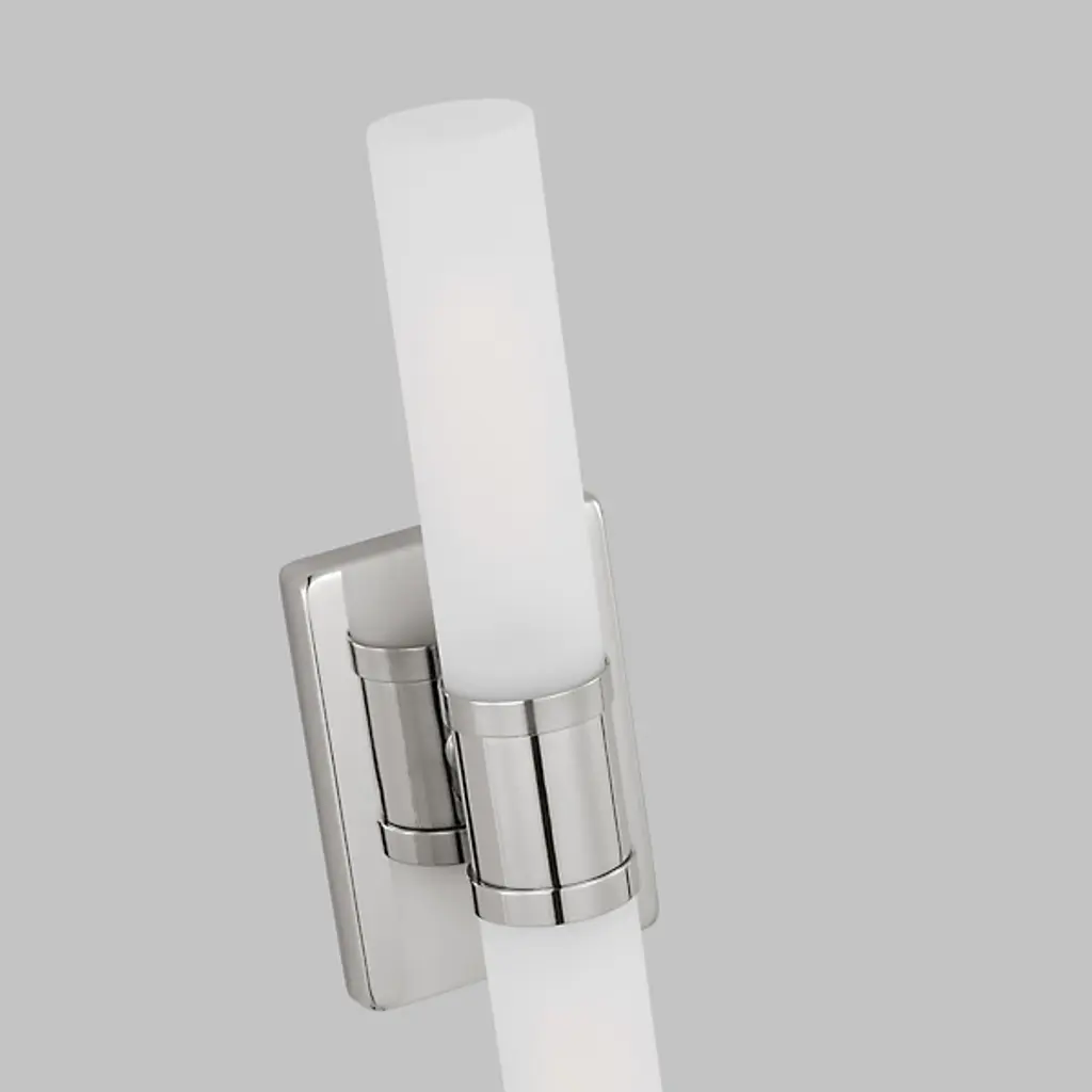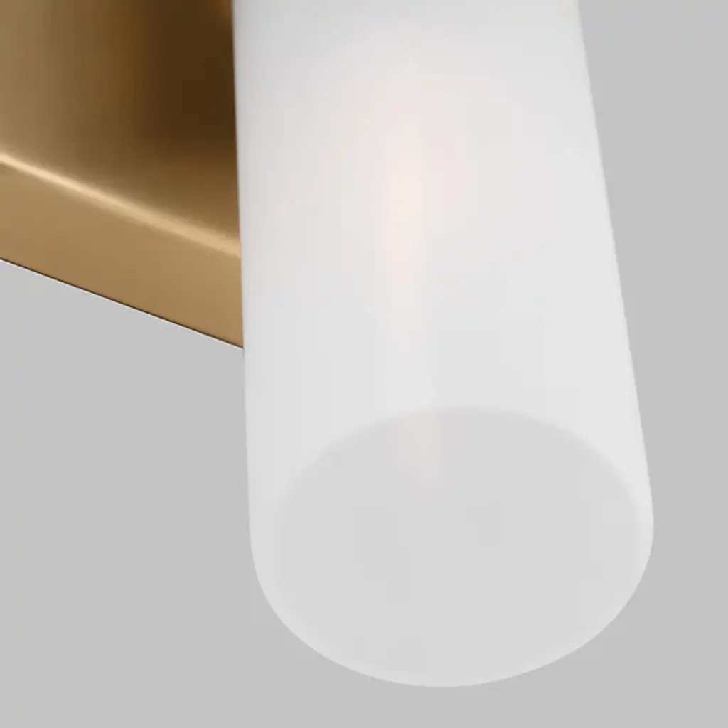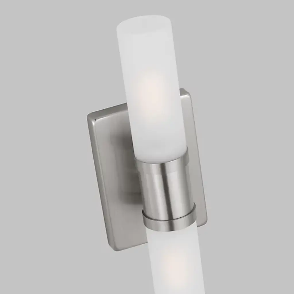 The Keaton Wall Sconce from Visual Comfort Studio takes a straightforward approach to vanity lighting, featuring clean lines and practical functionality. Designed in 2022, this piece combines a square steel backplate with a cylindrical collar that holds satin etched opal glass tubes extending both upward and downward. The two-directional light source helps minimize shadows during daily grooming routines, while the etched glass diffuses the bulb output for comfortable illumination. The steel construction ensures longevity, and dimming controls enable users to adjust the brightness throughout the day to meet various lighting needs.