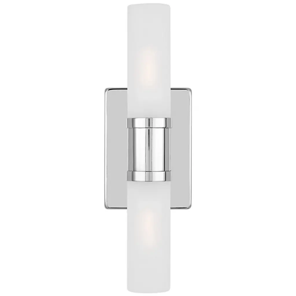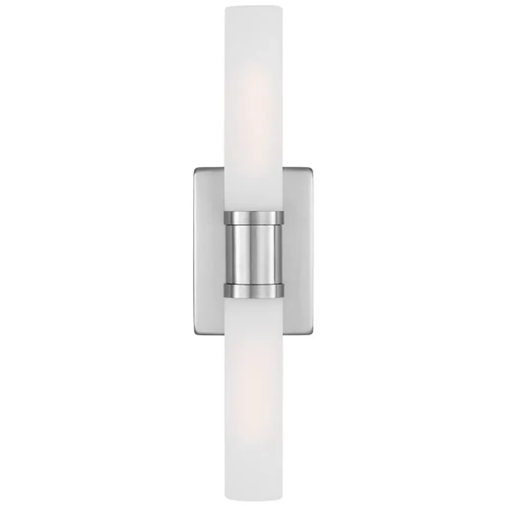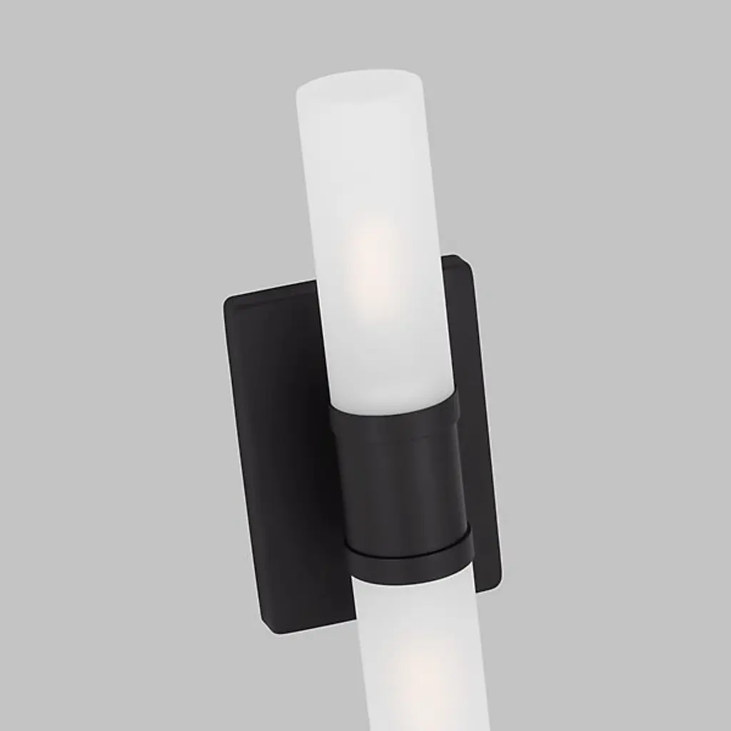 The Keaton Wall Sconce from Visual Comfort Studio takes a straightforward approach to vanity lighting, featuring clean lines and practical functionality. Designed in 2022, this piece combines a square steel backplate with a cylindrical collar that holds satin etched opal glass tubes extending both upward and downward. The two-directional light source helps minimize shadows during daily grooming routines, while the etched glass diffuses the bulb output for comfortable illumination. The steel construction ensures longevity, and dimming controls enable users to adjust the brightness throughout the day to meet various lighting needs.