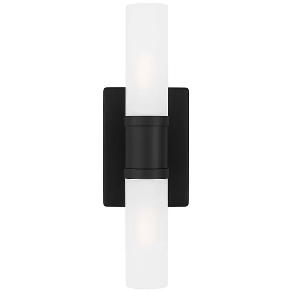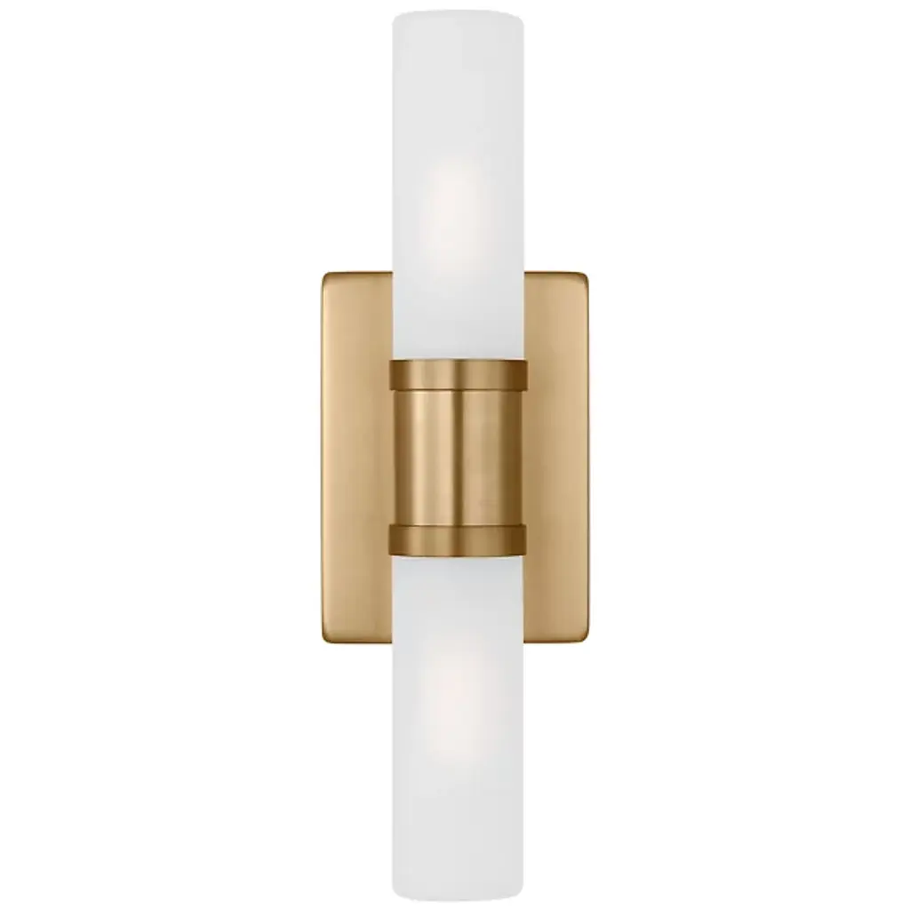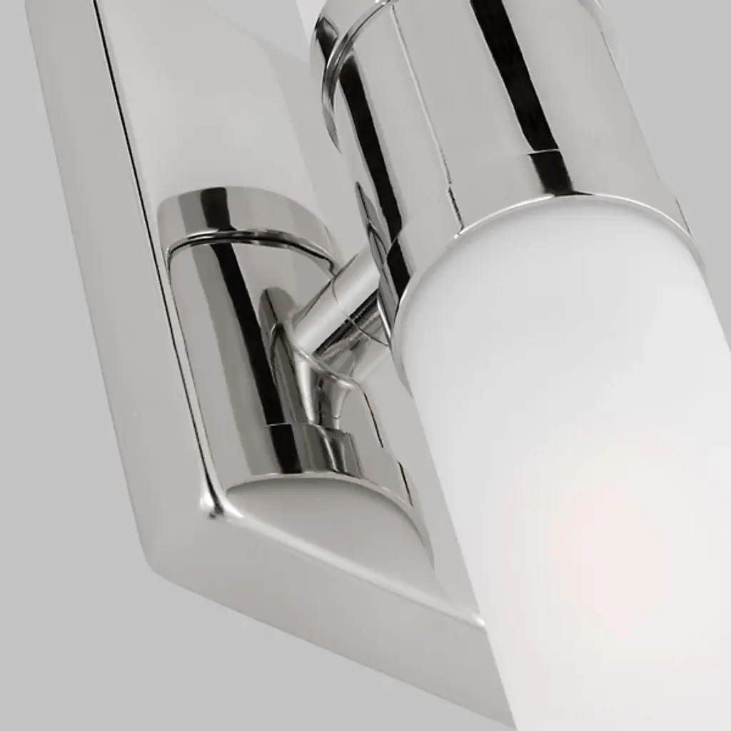 The Keaton Wall Sconce from Visual Comfort Studio takes a straightforward approach to vanity lighting, featuring clean lines and practical functionality. Designed in 2022, this piece combines a square steel backplate with a cylindrical collar that holds satin etched opal glass tubes extending both upward and downward. The two-directional light source helps minimize shadows during daily grooming routines, while the etched glass diffuses the bulb output for comfortable illumination. The steel construction ensures longevity, and dimming controls enable users to adjust the brightness throughout the day to meet various lighting needs.