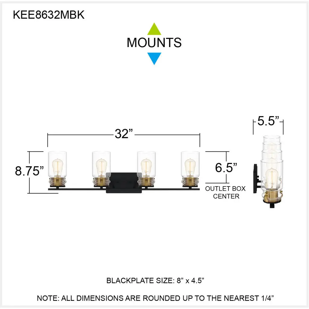 Keesey 4 Light 32 Inch Matte Black Bath Light Wall Light