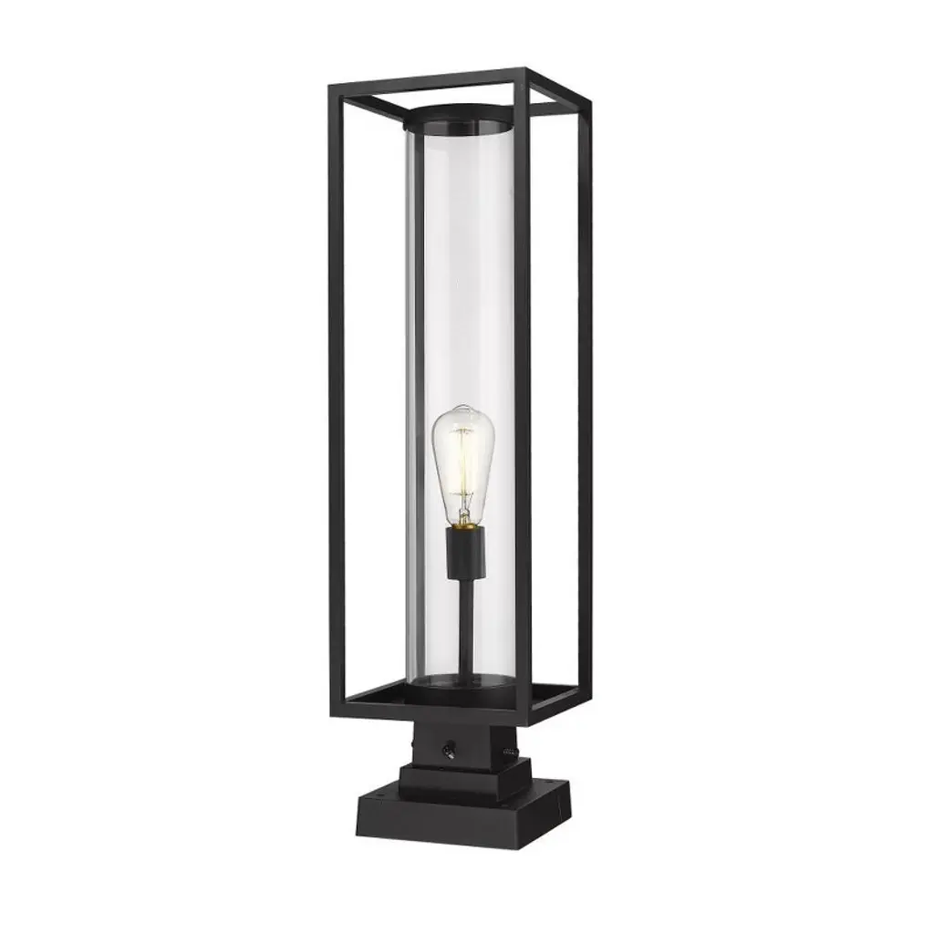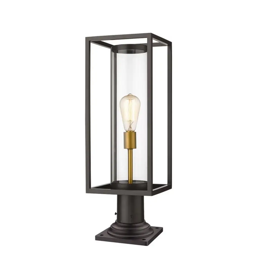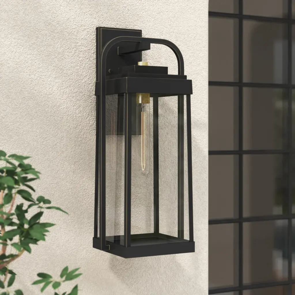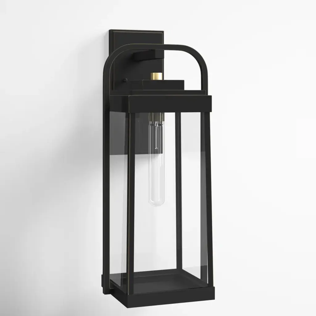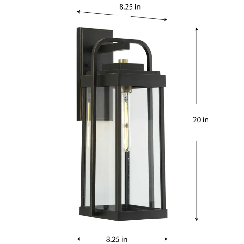 Cool and contemporary, this wall lantern features a bold classic silhouette that lends a stately presence to your patio or porch. Its elongated frame is crafted from weather- and rust-resistant aluminum with an antique bronze finish and brass accents, and it holds in place clear glass paneling to reflect the single bulb. We recommend a dimmable tube bulb for a vintage-inspired touch. And since it's wet-rated, it's safe to keep outdoors and exposed to the elements.