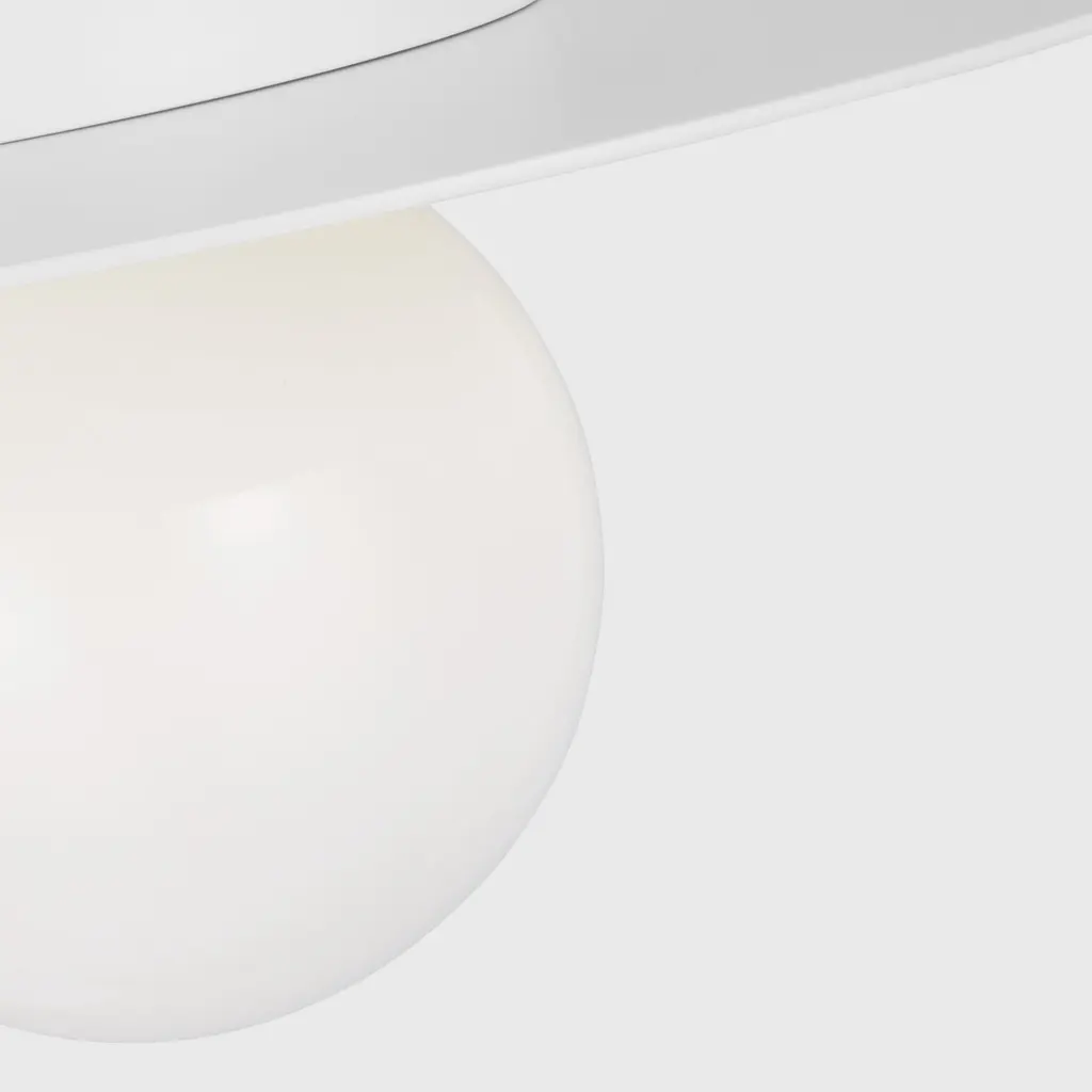 Nodes task, ceiling and wall lighting is minimal yet bold, highlighting Kelly's distinctive juxtaposition of mixed-materiality and curvilinear form. Light radiates from milk glass globes set against metal discs. All fixtures can be used or without the discs. The cast canopy is available in modern finishes. Hanging fixtures within this family feature black fabric cords, while pivot sconces can be cord and plug or hard wire.