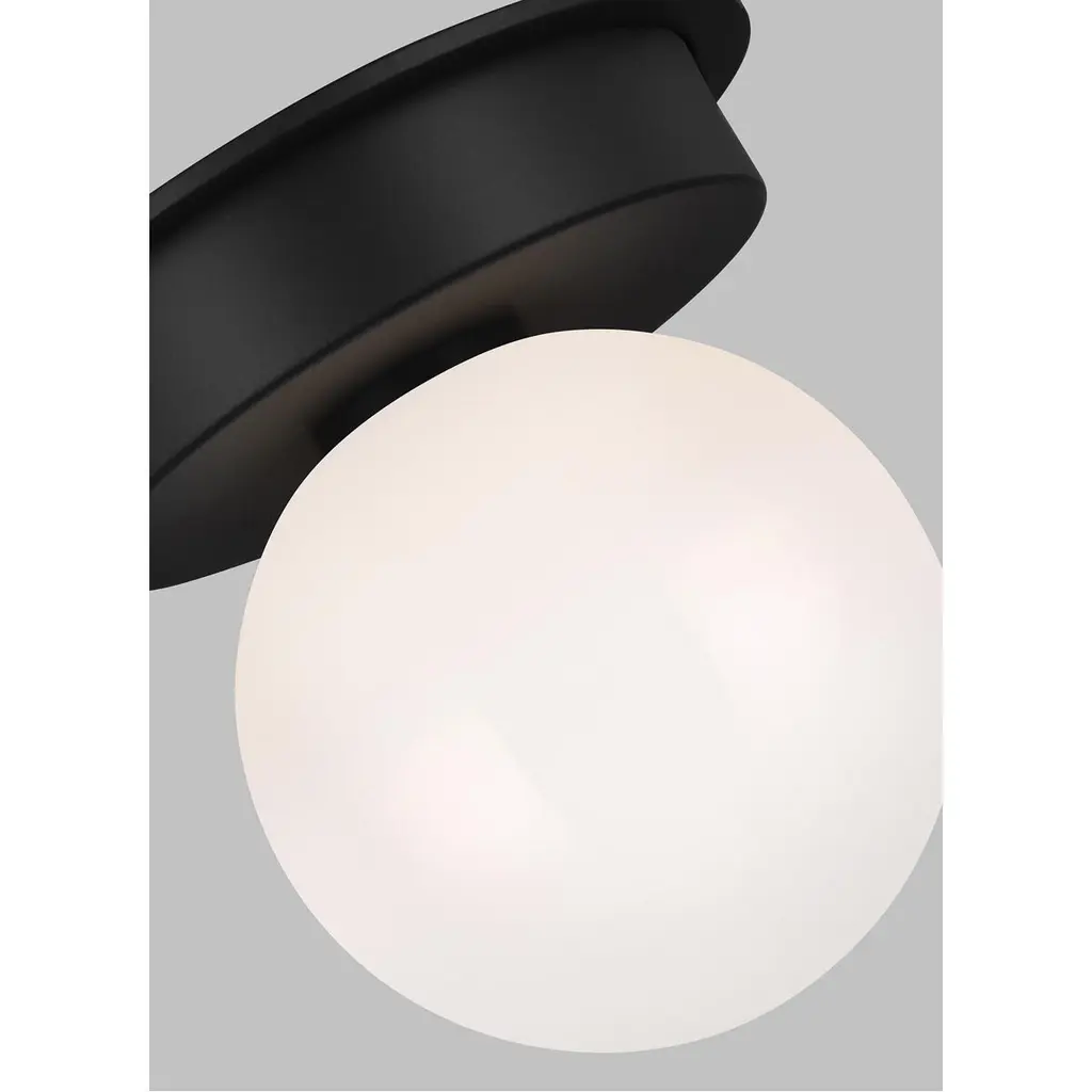 Nodes task, ceiling and wall lighting is minimal yet bold, highlighting Kelly's distinctive juxtaposition of mixed-materiality and curvilinear form. Light radiates from milk glass globes set against metal discs. All fixtures can be used or without the discs. The cast canopy is available in Burnished Brass or Midnight Black. Hanging fixtures within this family feature black fabric cords, while pivot sconces can be cord and plug or hard wire.