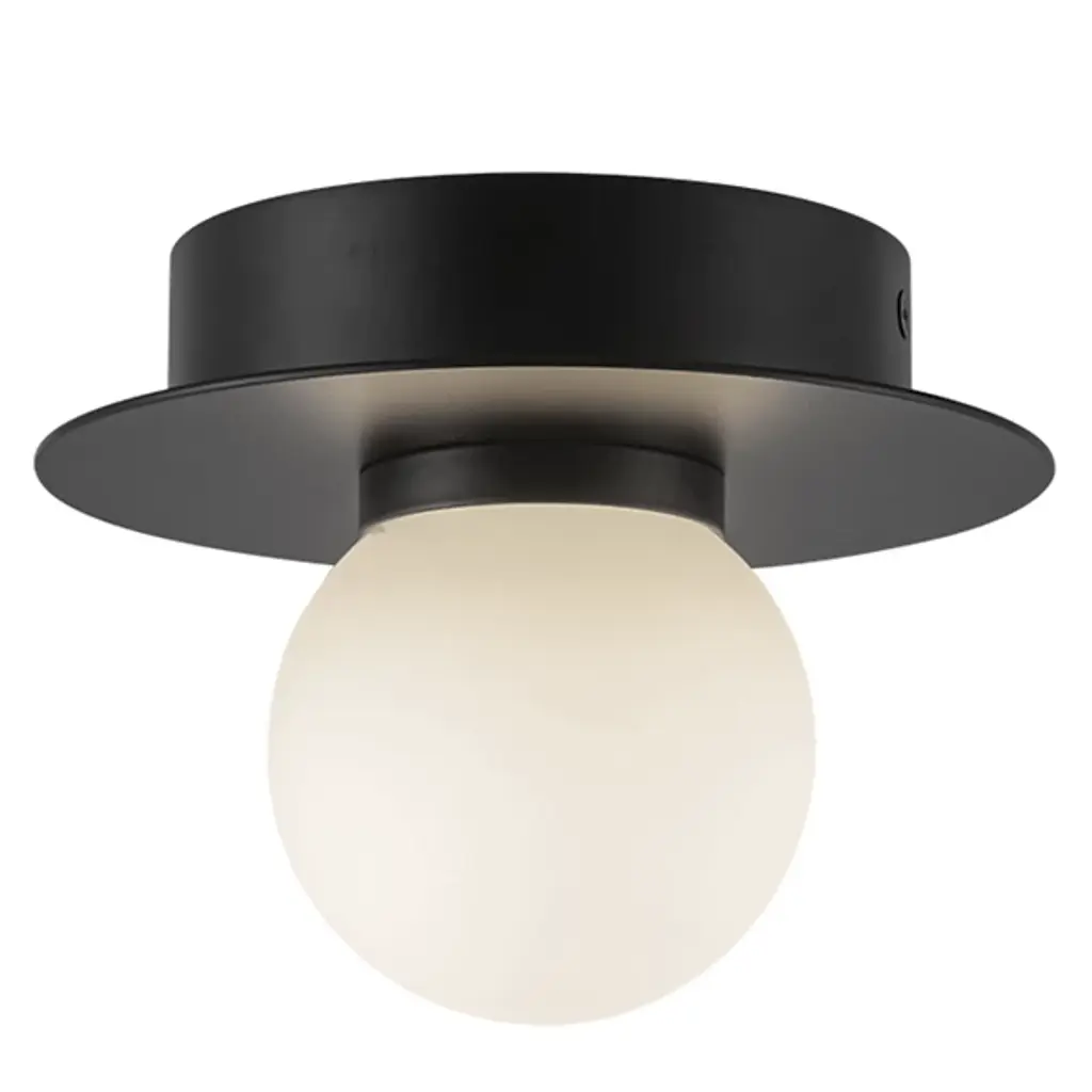 Designed by Kelly Wearstler, the Nodes task, ceiling, and wall lighting are minimal yet bold, highlighting Kelly's distinctive juxtaposition of mixed-materiality and curvilinear form. Light radiates from milk glass globes set against metal discs. All fixtures can be used or without the discs. The cast canopy is available in Burnished Brass or Midnight Black. Hanging fixtures within this family feature black fabric cords, while pivot sconces can be cord and plug or hard wire.