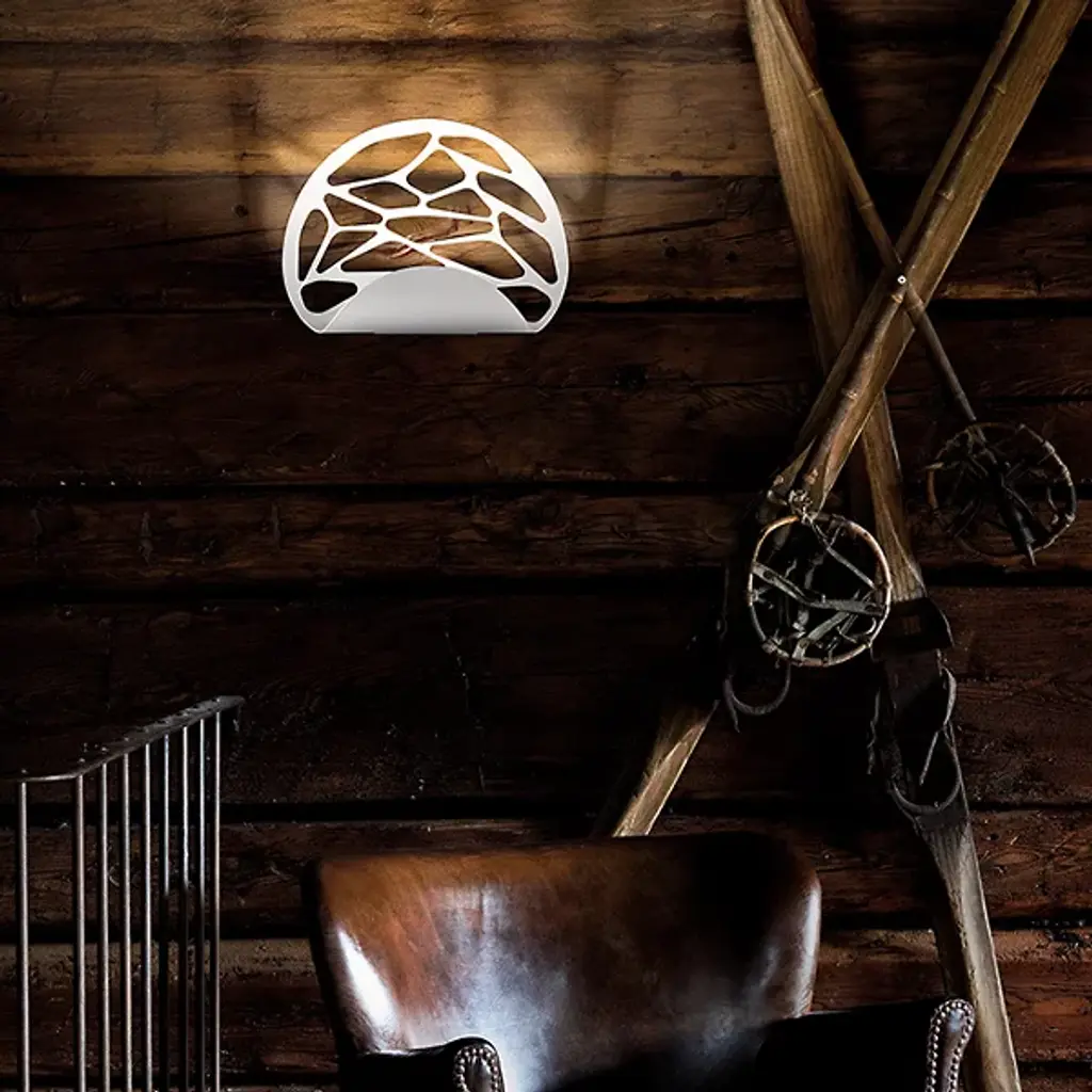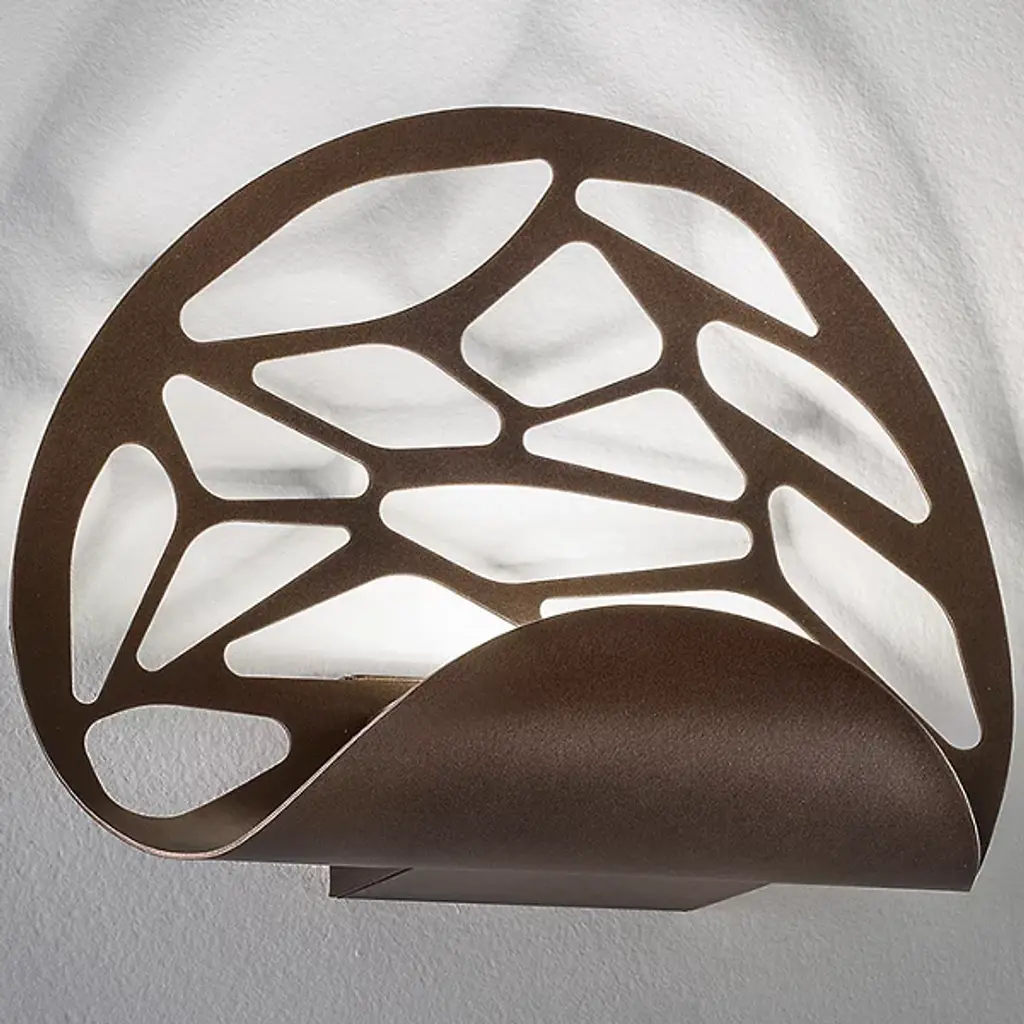 Skillfully crafted from a single sheet of metal, the LODES Kelly LED Wall Sconce is a cradle for ambient light, casting a broad array of shadows against the wall. The LED light source sits hidden within the bottom lip of the fixture, shining attractive illumination upward. Careful laser cutting creates the abstract openings—slightly resembling the patterned wings of a Monarch butterfly—contributing a subtle natural aesthetic to the hard metal structure.