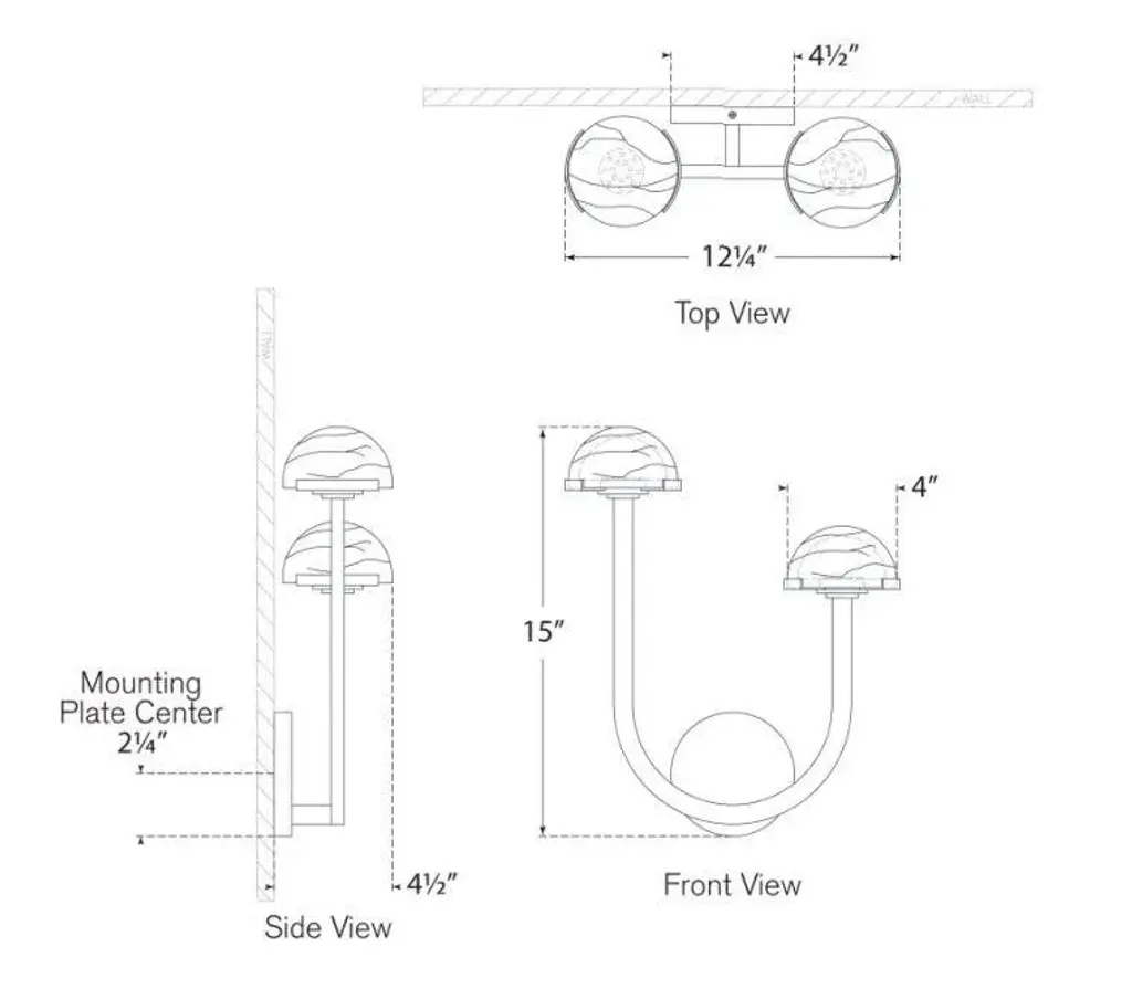 Pedra 15" Asymmetrical Right Sconce in Bronze with Alabaster Designer: Kelly Wearstler Height: 15" Extension: 4.5" Backplate: 4.5" Round Mounting: Hardwire Shade Detail: Alabaster Socket: Dedicated LED Wattage: 12w (1000lm) Safety Rating Location: DAMP Note: UL Only Alabaster is a Natural Stone Variations in Color and Texture are Expected
