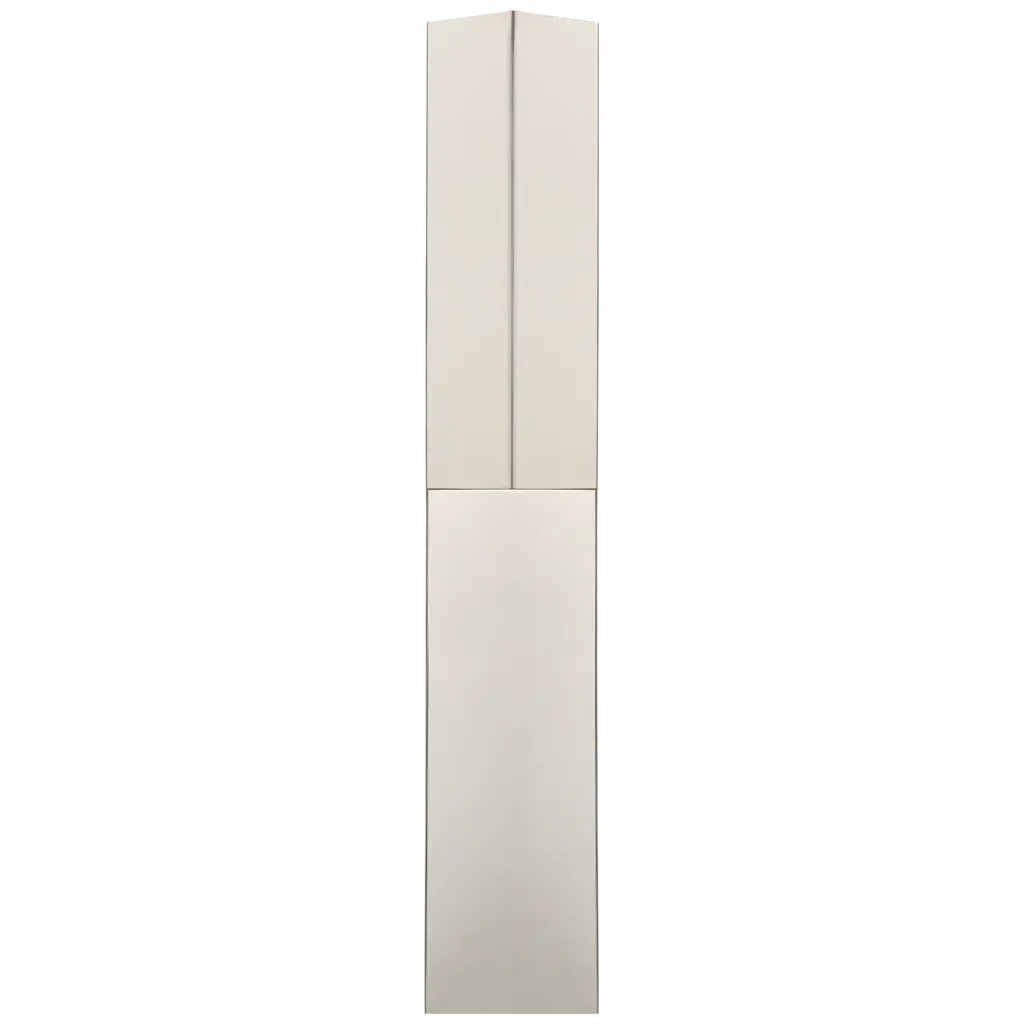 Rega 30" Folded Sconce in Polished Nickel Designer: Kelly Wearstler Height: 30" Extension: 3.25" Backplate: 4.5" x 30" Rectangle Mounting: Hardwire Socket: Dedicated LED Wattage: 12w (1000lm) Safety Rating Location: Wet Note: Polished Nickel is not Intended for use Outdoors