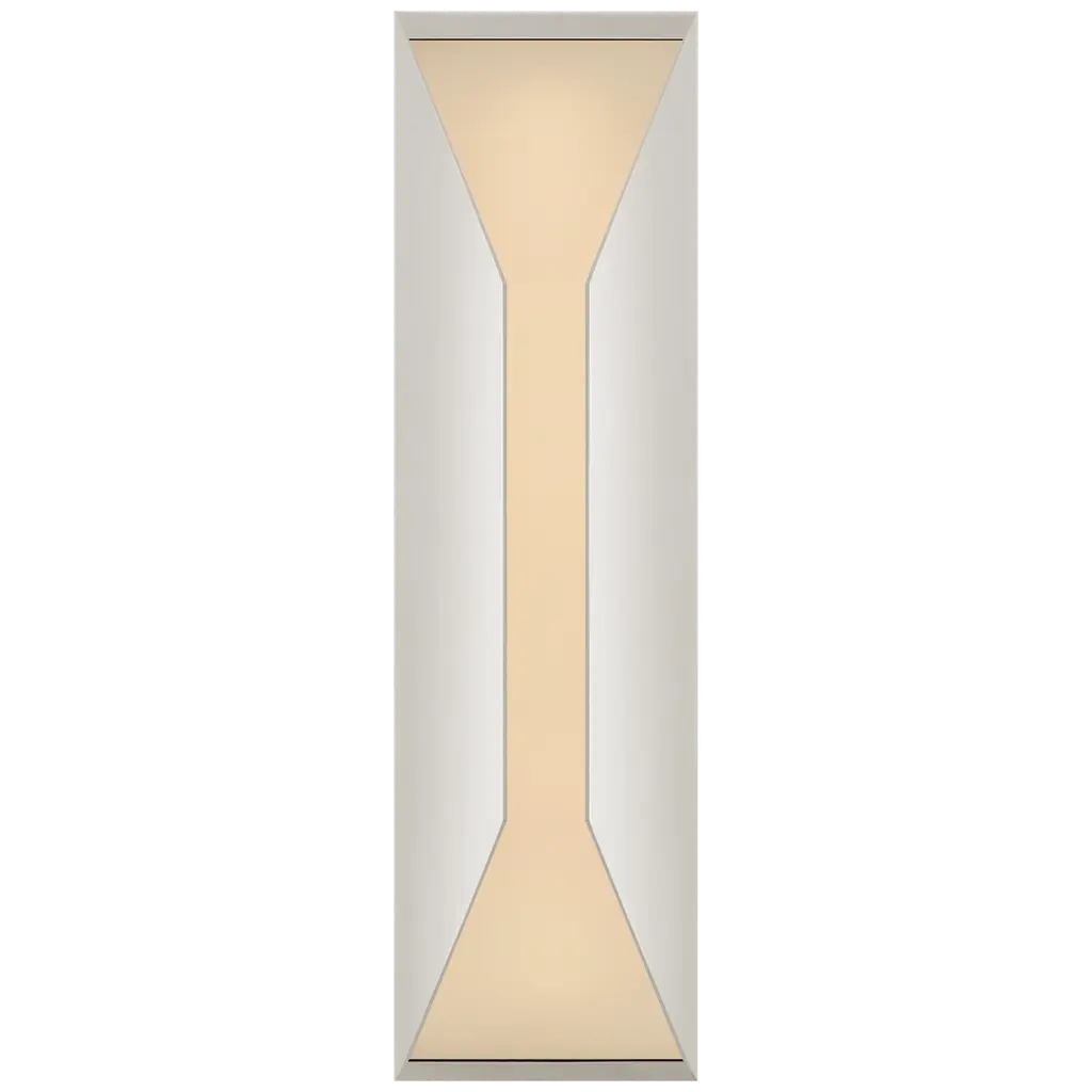 Stretto Medium Sconce in Polished Nickel with Frosted Glass Designer: Kelly Wearstler Height: 16" Extension: 4.25" Backplate: 4.75" x 16" Rectangle Mounting: Hardwire Shade Detail: Frosted Glass Socket: Dedicated LED Wattage: 12w (1000lm) Safety Rating Location: WET Note: Polished Nickel is not Intended for use Outdoors