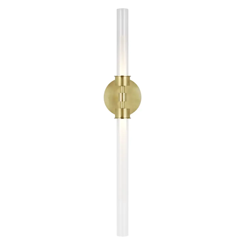 The Kelly Wearstler Phobos Wall Sconce by Kelly Wearstler exceptionally contemplates clean intersecting forms and the purity of tubular light in a modern dialogue of geometries. Radial and rectilinear landscapes create a sculptural world for customized LED lamping that features a central light-guide channeling for a fully diffused glow. Features