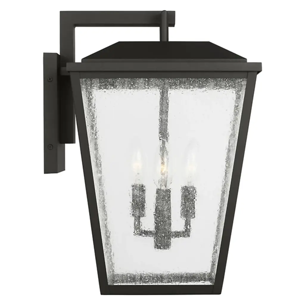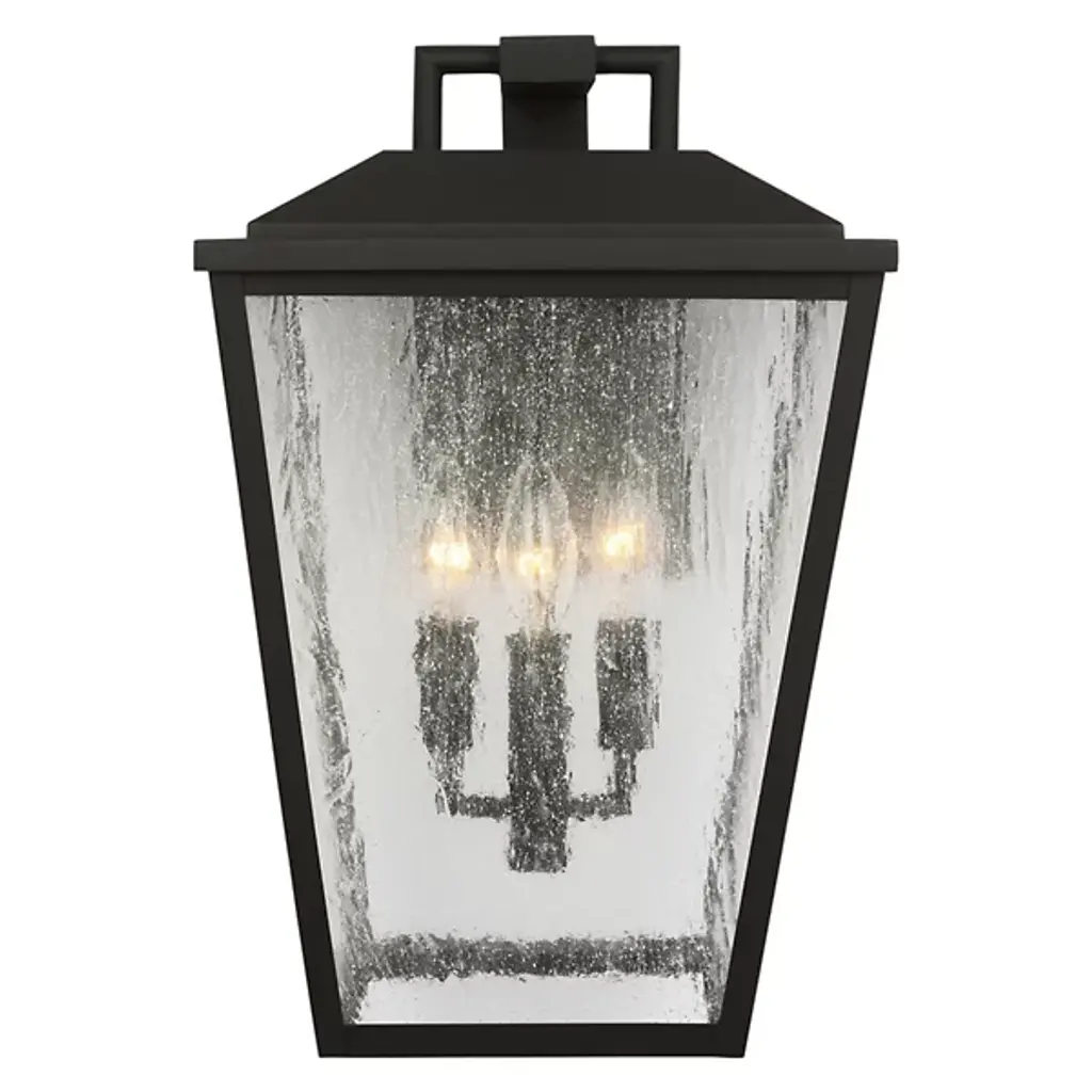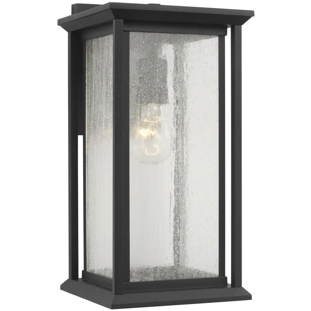 The Kennewick Outdoor Wall Sconce from Visual Comfort Studio rethinks traditional carriage lighting through a fresh perspective. Its aluminum construction delivers necessary durability against weather elements without adding excessive weight to exterior walls. The sconce’s irregular glass panels with a textured surface scatter light in an intriguing pattern while providing effective illumination for outdoor spaces. Its unique architectural detail adds subtle interest to the overall profile without overcomplicating the design. Drew & Jonathan Scott created this fixture with versatility in mind, making it suitable for various architectural settings, from historic renovations to newly constructed homes.