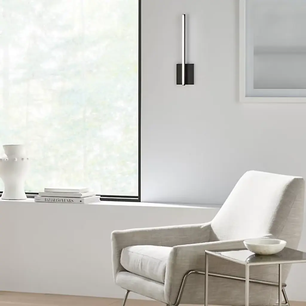 Make a smooth addition to indoor wall and hallway surfaces with the Kenway LED Wall Sconce 277V from Visual Comfort Modern, formerly known as Tech Lighting, Anchored by a sleek square wall plate, this simple fixture seats a slender metal housing vertically, securing integrated LED lamping beneath a translucent diffuser bar that extends inside it, adding an extra note of depth. The lamping pours out a pleasing glow around the fixture, reflecting off the smooth metalwork in a stylish spectacle.
