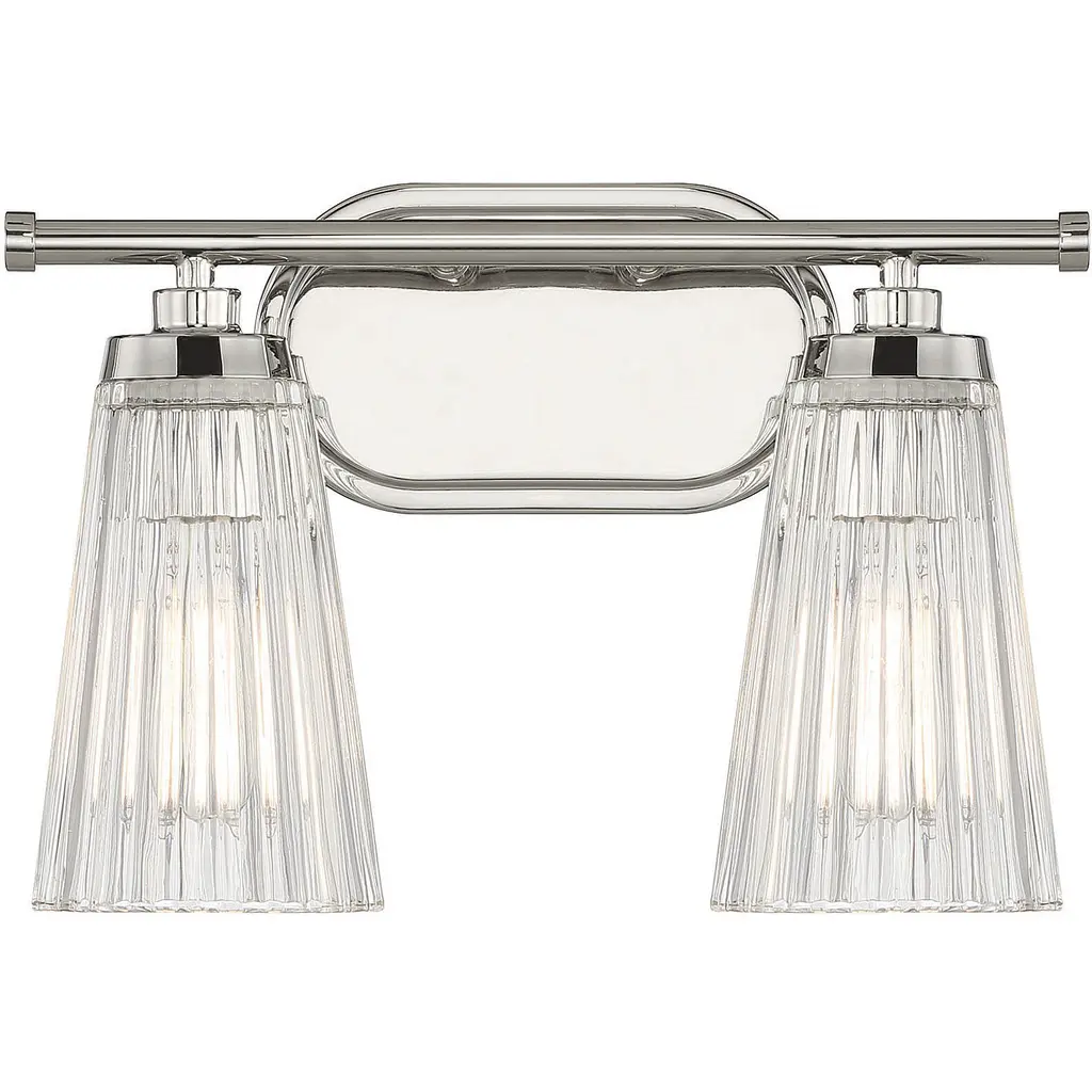 Classic styled 2 light bath light with clear cut glass and polished chrome finish. Can be hung up or downwards