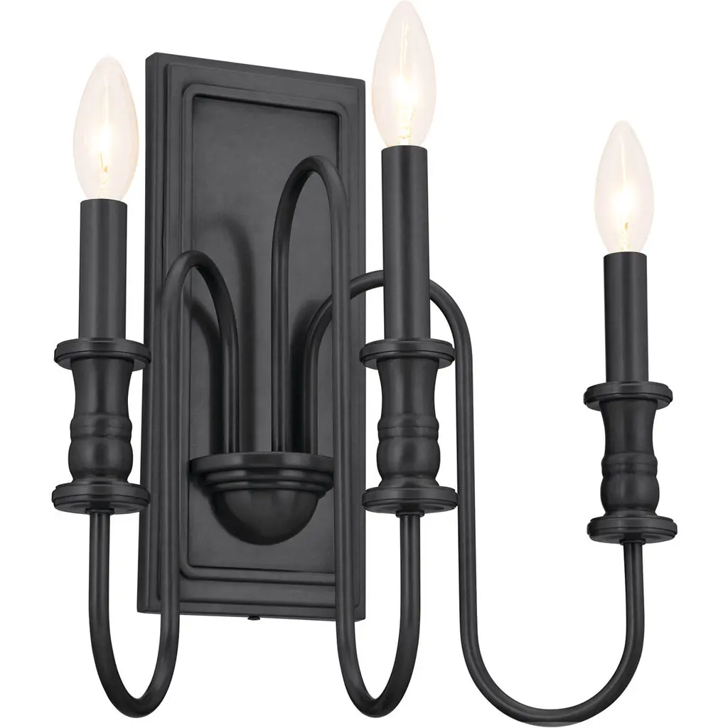 Three Light Wall Sconce from Karthe collection in Black finish. Number of Bulbs 3. Max Wattage 60.00 . No bulbs included. No UL Availability at this time.
