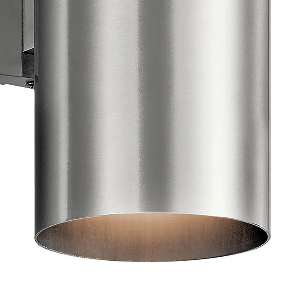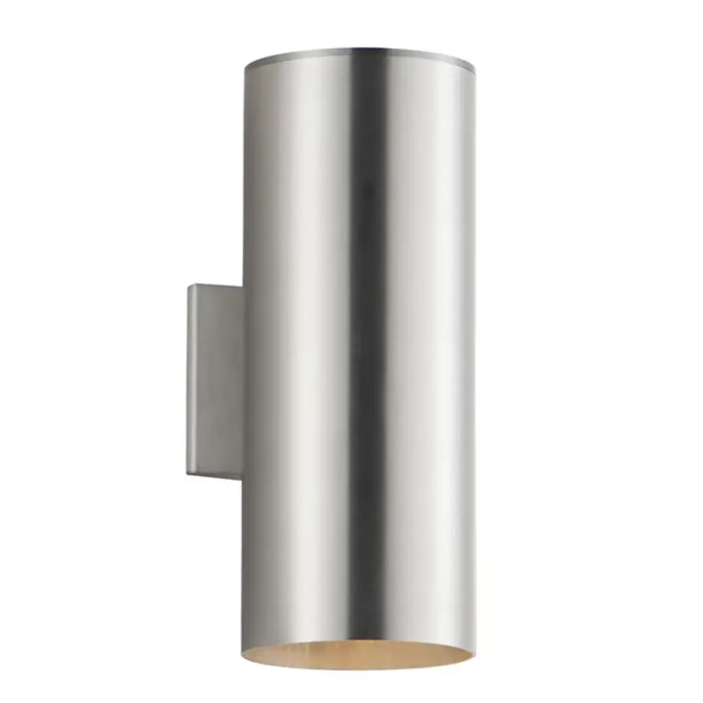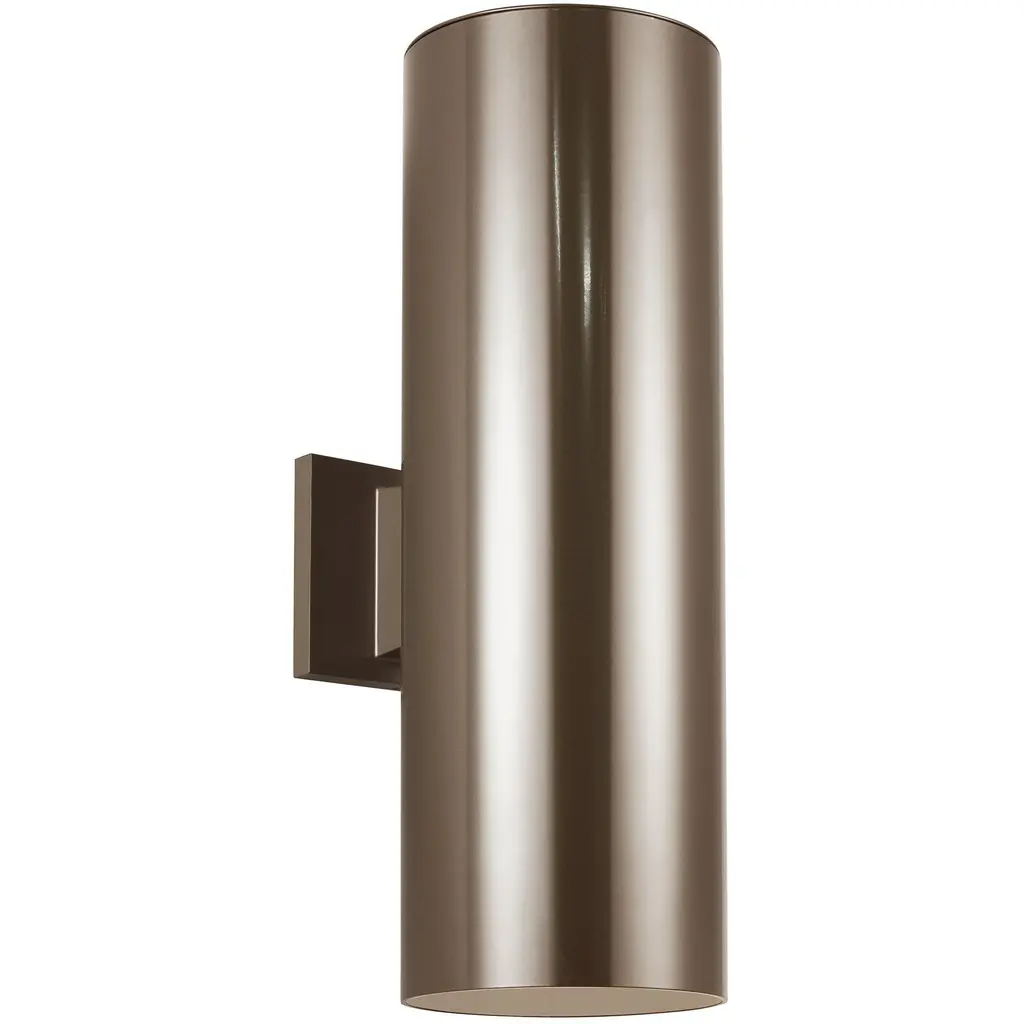 This Wall Cylinder features a unique two light design that shoots light both up and down your walls. It uses BR-40 bulbs which produce 120-watts (max.) of pure light. It measures 15in. high and is U.L. listed for damp location. Back Plate Height: 4.50 Back Plate Width: 4.88 Material: Aluminum, Finish Color: Architectural Bronze, Width: 5.75", Height: 15", Depth: 8.5", Height From Outlet Box: 4.88", Backplate Width: 4.88", Backplate Length: 4.5", Lamping Type: Incandescent, Number Of Bulbs: 2, Wattage: 120 Watts, Dimmable: No, Moisture Rating: Damp Rated