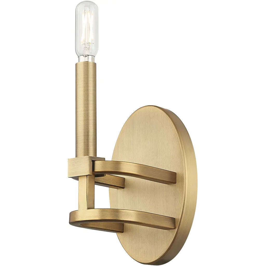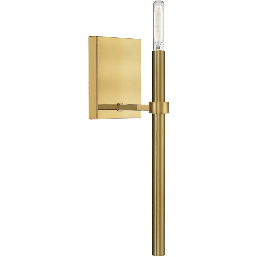 This 1 light modern wall from the Alden collection features a warm and beautiful Natural Brass finish creating a stunning yet simplistic look for your home. Material: Steel, Finish Color: Natural Brass, Width: 5", Height: 11.5", Depth: 5.25", Height From Outlet Box: 3.75", Backplate Width: 5", Backplate Length: 7.5", Lamping Type: Incandescent, Number Of Bulbs: 1, Wattage: 60 Watts, Moisture Rating: Damp Rated
