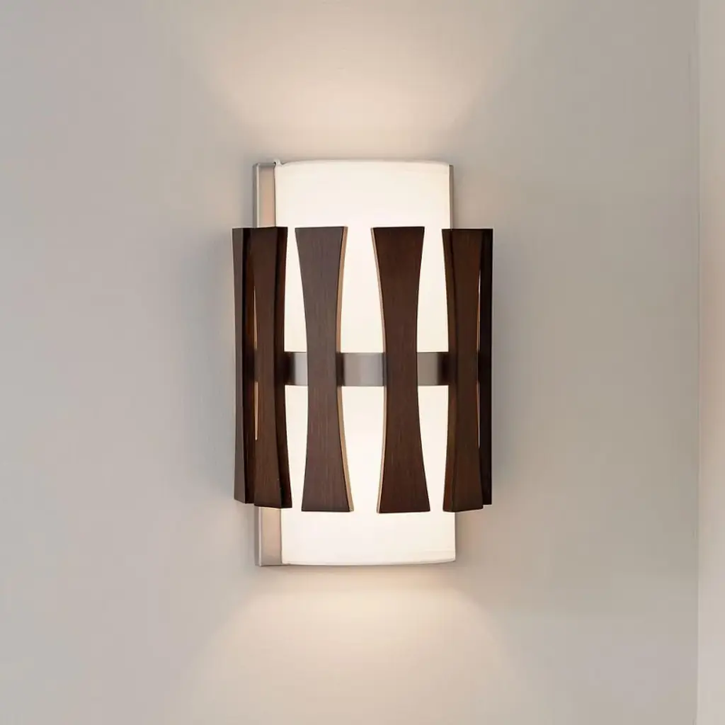 Cirus 12.25" 2 Light Wall Sconce with Tempered Etched Glass and White Linen in Auburn Stain