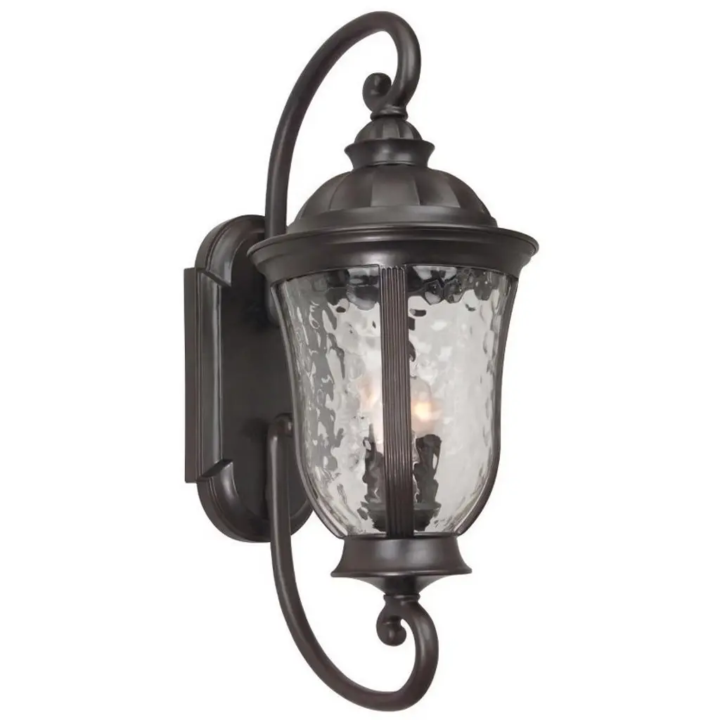 Uncluttered and traditional, this 1 light outdoor wall lantern from the Courtyard(TM) collection adds the warmth of a secluded terrace to any patio or porch. Featuring Clear Seedy Glass, this design will elevate and enhance any space. Back Plate Height: 10.70 Back Plate Width: 5.92 Material: Aluminum, Finish Color: Rubbed Bronze, Width: 8.25", Height: 17.75", Depth: 11", Height From Outlet Box: 7.8", Backplate Width: 5.92", Backplate Length: 10.7", Lamping Type: Incandescent, Number Of Bulbs: 1, Wattage: 150 Watts, Dimmable: No, Moisture Rating: Wet Rated