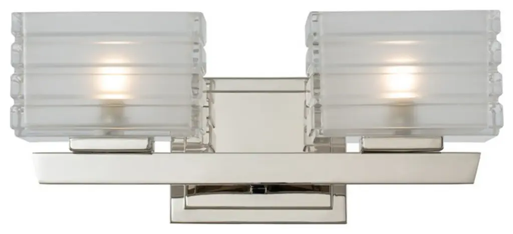 Two Light Bath from Tully collection in Chrome finish. Number of Bulbs 2. Max Wattage 100.00. No bulbs included. This 2 light bath light from the Tully(TM) collection creates a pleasing flow in any bathroom or vanity space. Characterized by clean lines and a simple cubic design, it provides an airy, uncluttered feel with an understated, contemporary flair. Featuring a Chrome finish with Satin-Etched Cased Opal Glass, this composition blends effortlessly with existing d?cor while still leaving a unique impression. May be installed with glass up or down. No UL Availability at this time.
