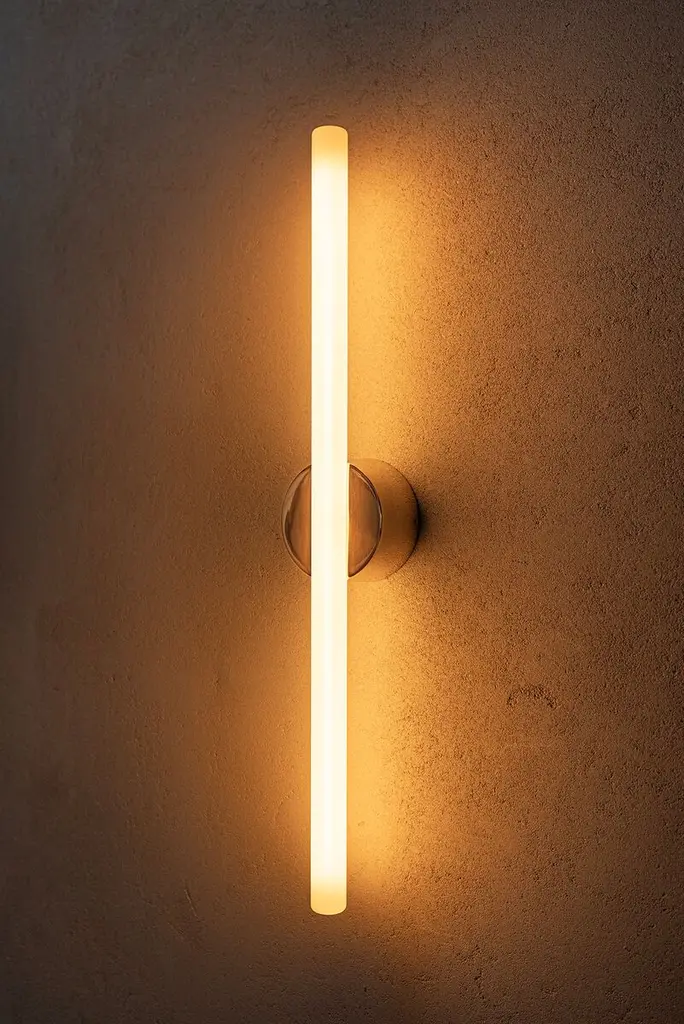 Named in reference to the delicate confluence of the linear light source and central pivoting fixture, the light frosted finish subtly exposes and celebrates the internal filament when illuminated while maintaining the form of a typical S14d light source. The Kilter Wall Light fixture is rated IP44, making it an ideal bath bar or vanity light. The Kilter light source is available in two lengths – 640mm and 500mm – and two colour temperatures – 2200K and 2700K.