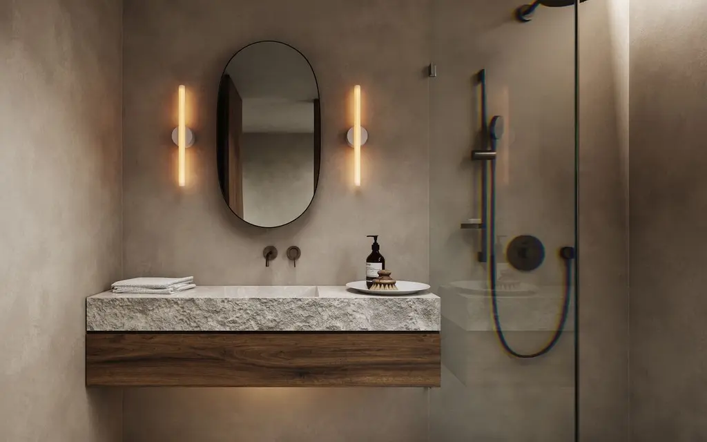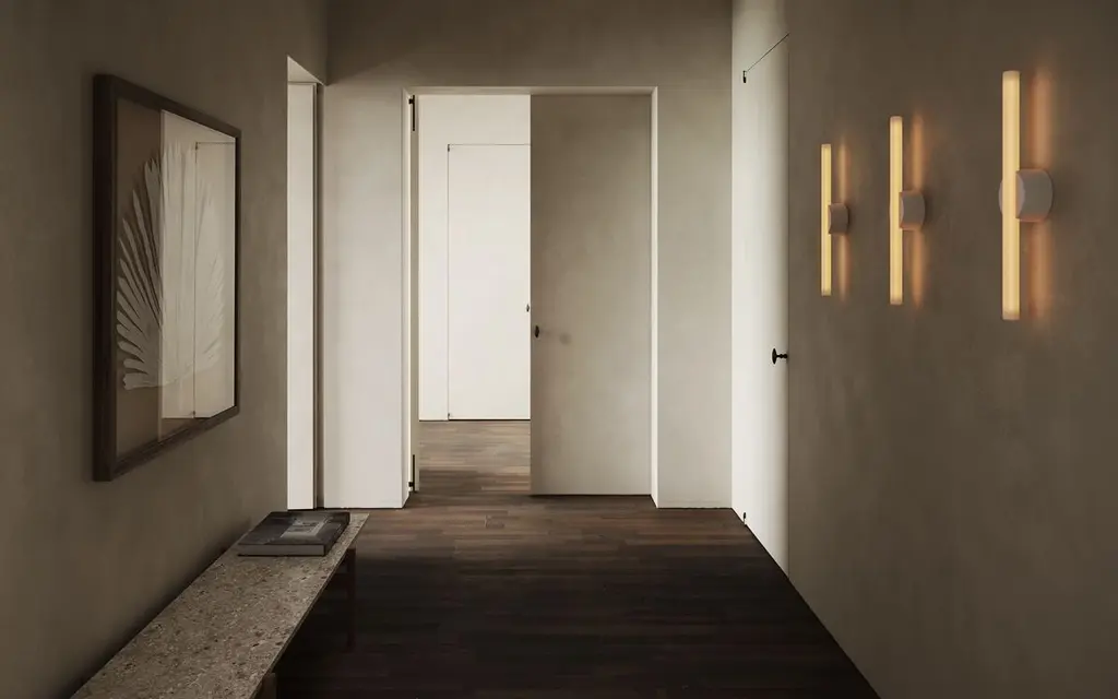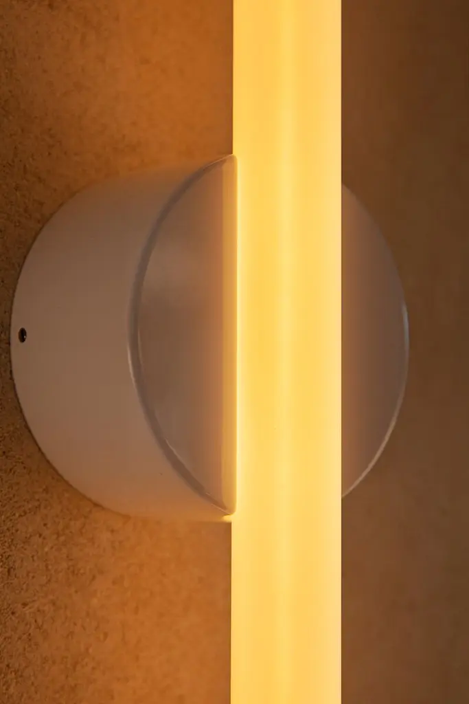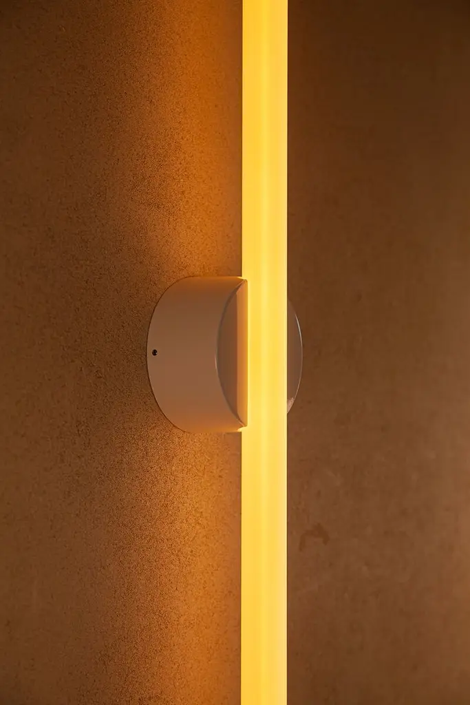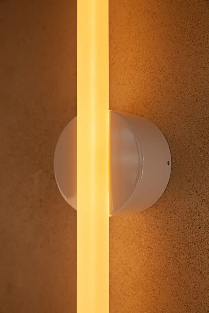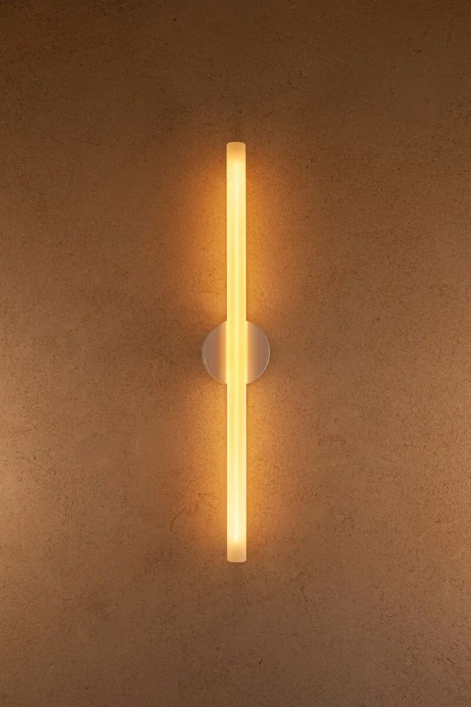 Named in reference to the delicate confluence of the linear light source and central pivoting fixture, the light frosted finish subtly exposes and celebrates the internal filament when illuminated while maintaining the form of a typical S14d light source. The Kilter Wall Light fixture is rated IP44, making it an ideal bath bar or vanity light. The Kilter light source is available in two lengths – 640mm and 500mm – and two colour temperatures – 2200K and 2700K.