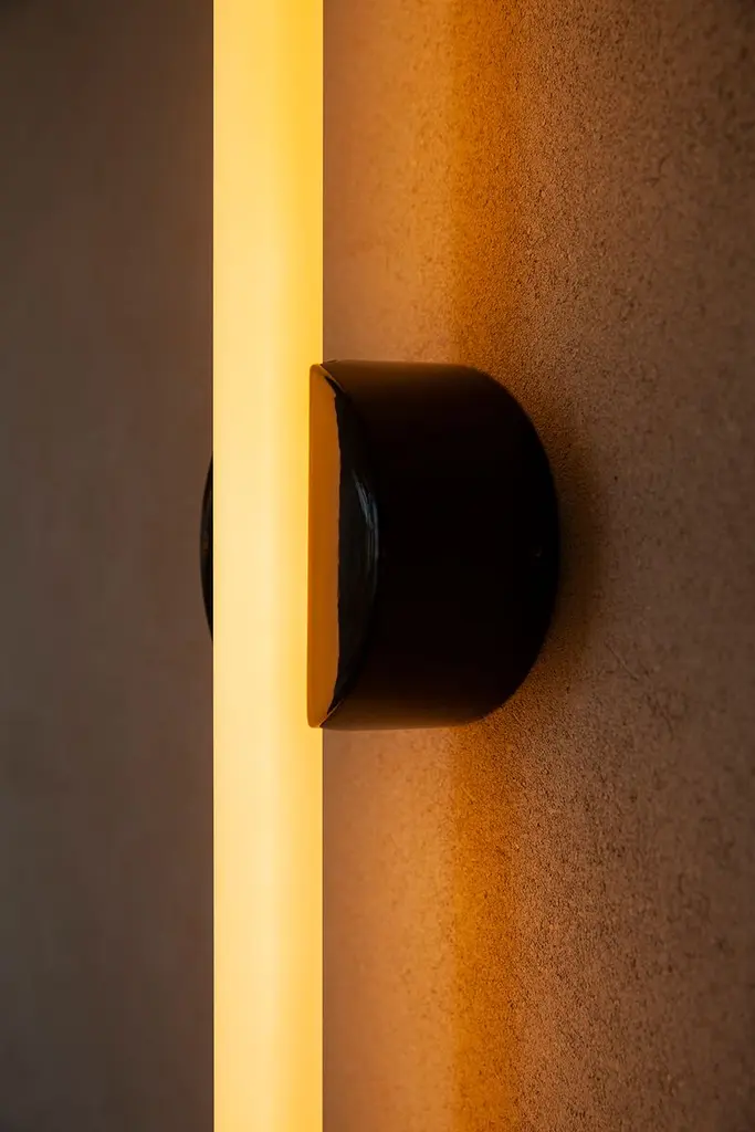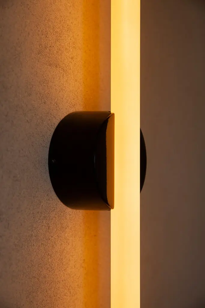 Named in reference to the delicate confluence of the linear light source and central pivoting fixture, the light frosted finish subtly exposes and celebrates the internal filament when illuminated while maintaining the form of a typical S14d light source. The Kilter Wall Light fixture is rated IP44, making it an ideal bath bar or vanity light. The Kilter light source is available in two lengths – 640mm and 500mm – and two colour temperatures – 2200K and 2700K.