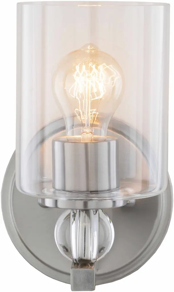 Collection: Kingscote Colors: Metallic - Nickel, Clear Material: Fixture: Crystal,Fixture: Iron Styles: Transitional,Bohemian Made In: China Lighting Type: Wall Sconce Base Color: Metallic - Nickel Shade Color: ClearClear Hanging Method: Rod Cord Length: 4' Number of Bulbs: 1 Socket Type: E-26 Bulb Wattage: 40W