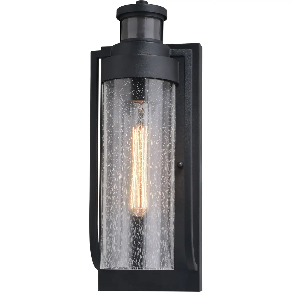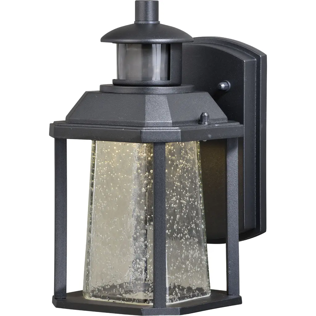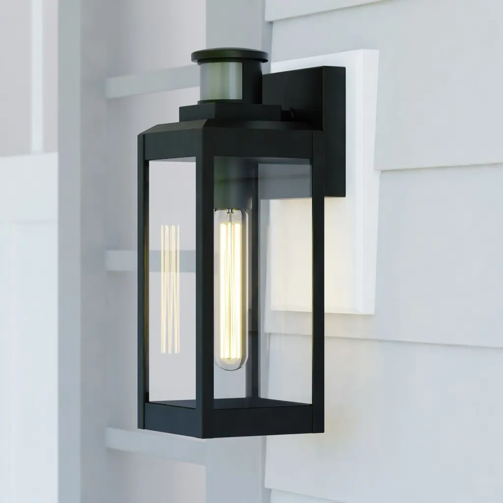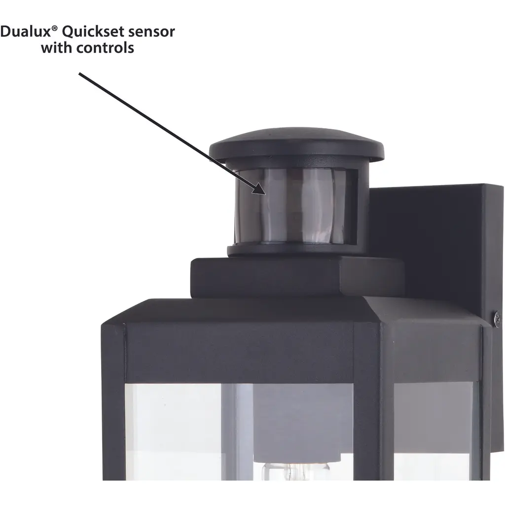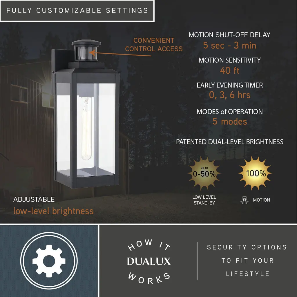 Elongated, slim, clear glass panels frame the Kinzie for a clean, contemporary feel. Finished in textured black, the Kinzie creates a bold but understated look perfect for highlighting your space. This outdoor wall light is ideal for your covered porch, entryway, garage, or any other area of your home. Dualux patented dual-level security lighting is outdoor lighting made smarterbrighter light at dusk, dimmer at night, brightening instantly when it detects motion. Designed to reliably and effortlessly enhance your homes beauty, security and efficiency from dusk to dawn with its built in motion sensor and photocell. This fixture works with most dimmable LED bulb models.
