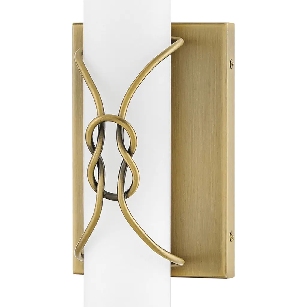 Evoking a tasteful, nautical aesthetic, Kitts embraces a versatile design that perfectly balances form with function. The symmetrical silhouette can be hung vertically or horizontally, showcasing etched white opal glass that diffuses soft, even light from dimmable integrated LEDs. An eye-catching knotted cuff and coordinating end caps feature a Chrome or Lacquered Brass finish.
