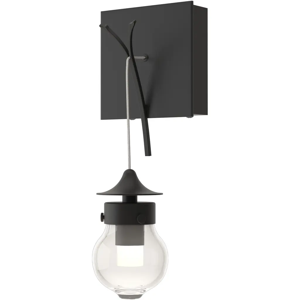Lighting so creative, the base itself is a work of art. The Kiwi Wall Sconce by Hubbardton Forge depicts an artistic flare reminiscent of a sculpture, combined with functional lighting that illuminates any room. It features a thick back plate, offset by a sleek steel stem and single artisan glass shade which is suspended from a slender cable. Hang in conjunction with matching pieces to a create a truly one of a kind display.