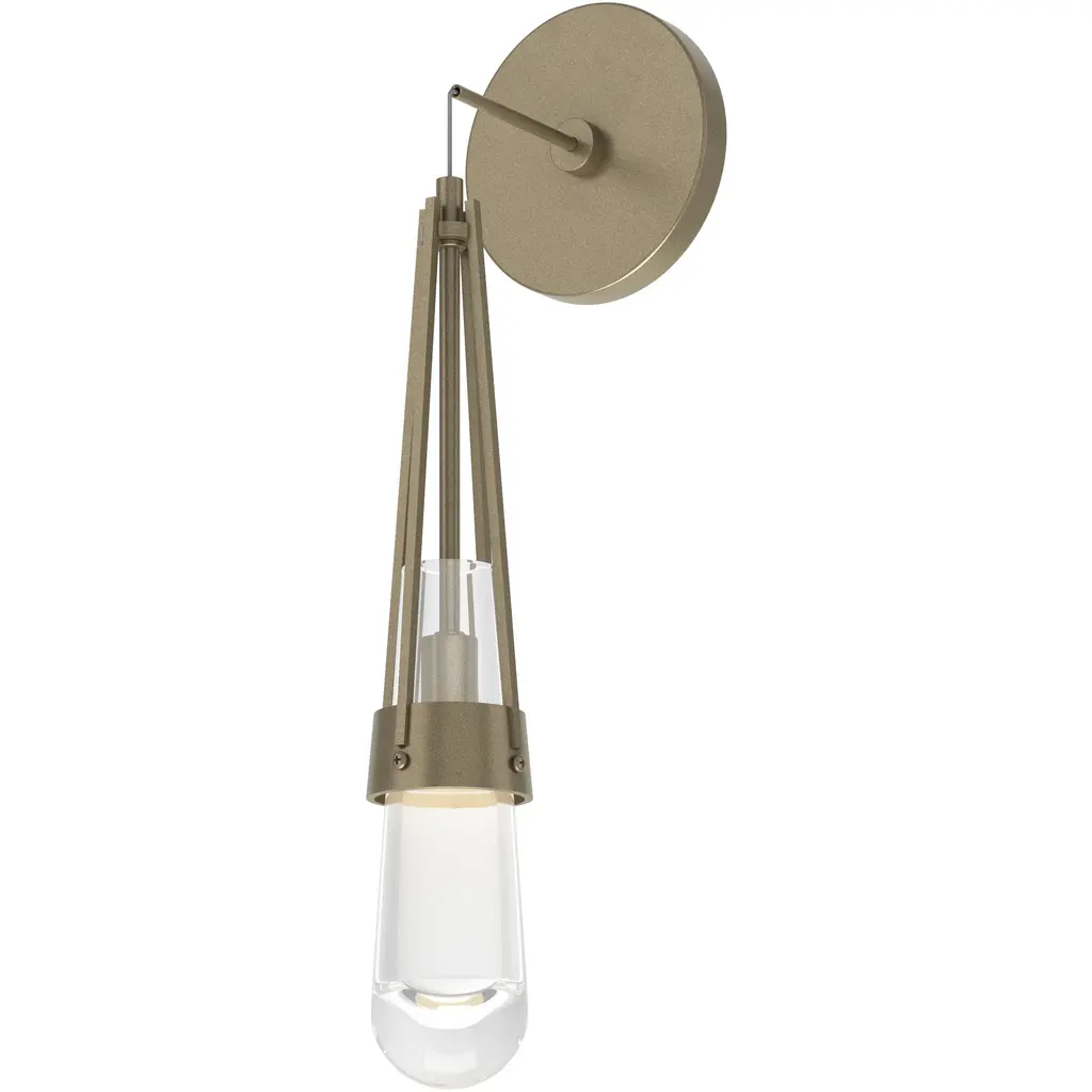Lighting so creative, the base itself is a work of art. The Kiwi Wall Sconce by Hubbardton Forge depicts an artistic flare reminiscent of a sculpture, combined with functional lighting that illuminates any room. It features a thick back plate, offset by a sleek steel stem and single artisan glass shade which is suspended from a slender cable. Hang in conjunction with matching pieces to a create a truly one of a kind display.