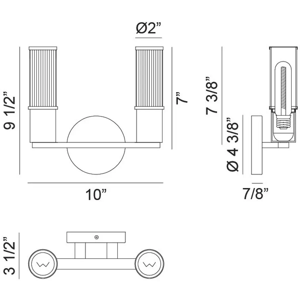 2 LT 10"W x H9.5" "KLARICE" WALL SCONCE -MB-CLEAR GLASS