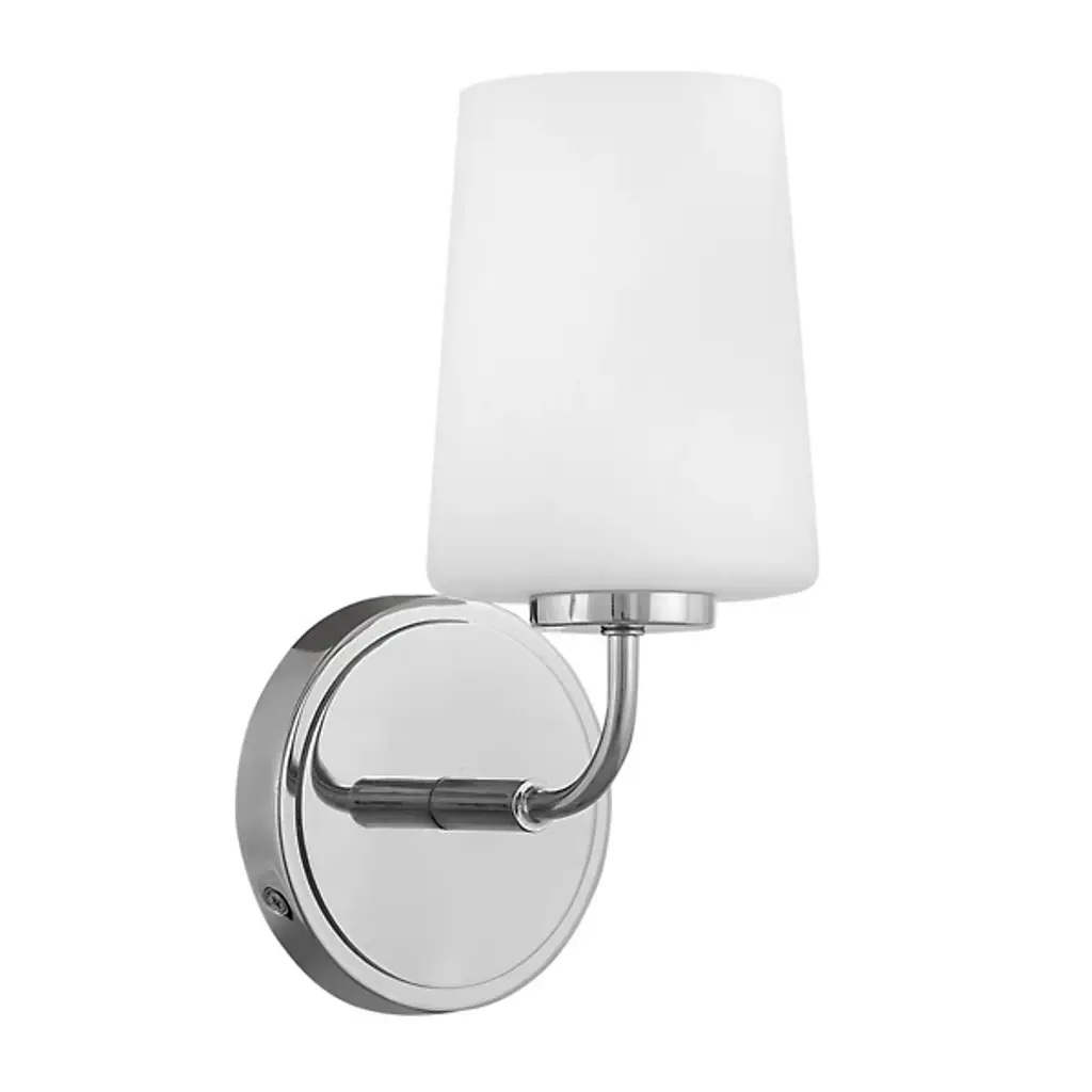 Streamlined sophistication. You can’t go wrong with the fusion of modern and traditional motifs in the Kline Bath Wall Sconce from Hinkley. Off the bat, the eyes are drawn to the familiar tapered form of the shade. Made from etched opal glass, the shade softens up the brilliant light for your viewing pleasure. A flip of the switch generates a delicate ambient glow. The shade is presented to you with the gentle curve of a slender arm that proves handsome in silhouette. Made from steel, the arm and the backplate seduce in their bold finish. The backplate lets you mount the piece with the shade facing up or down for a tailored look.