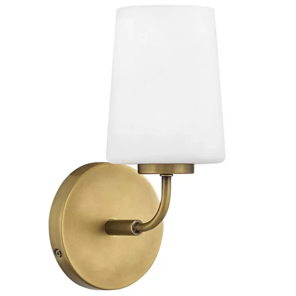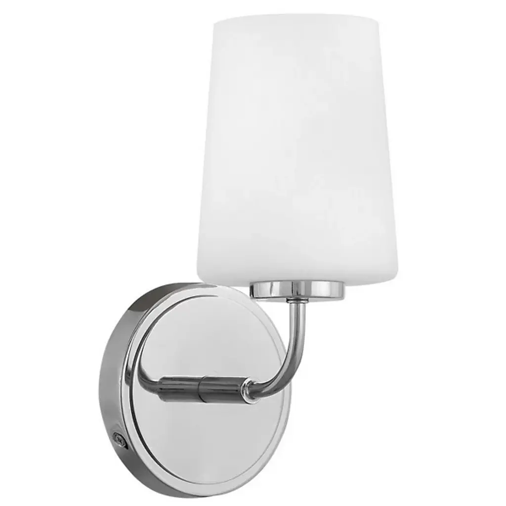 Streamlined sophistication. You can’t go wrong with the fusion of modern and traditional motifs in the Kline Bath Wall Sconce from Hinkley. Off the bat, the eyes are drawn to the familiar tapered form of the shade. Made from etched opal glass, the shade softens up the brilliant light for your viewing pleasure. A flip of the switch generates a delicate ambient glow. The shade is presented to you with the gentle curve of a slender arm that proves handsome in silhouette. Made from steel, the arm and the backplate seduce in their bold finish. The backplate lets you mount the piece with the shade facing up or down for a tailored look.