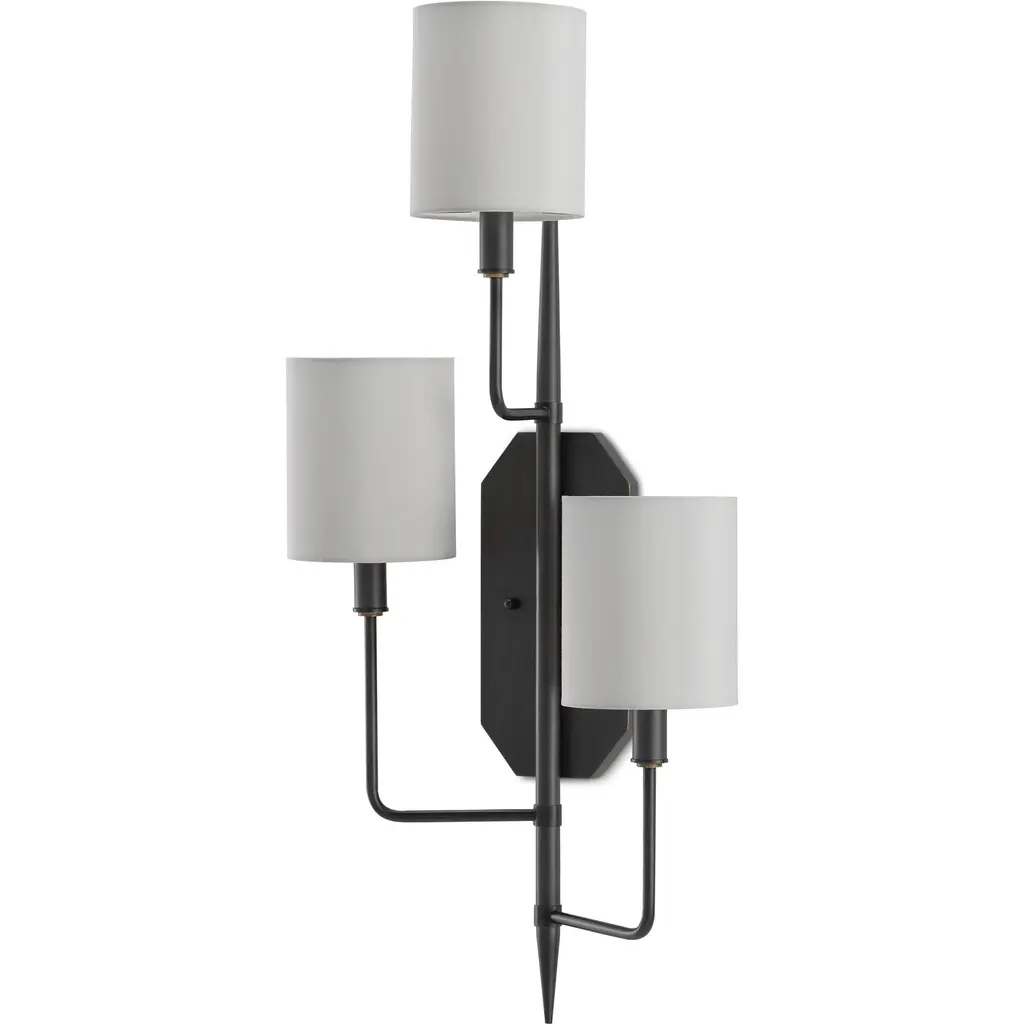 Founded during a time when chivalry was at its height, the namesake village of our Knowsley Left Wall Sconce saw its fair share of pointed incidents. The restrained design of this fixture with its straight-as-an-arrow stem and three tailored off-white shantung shades bring it a noble personality. The oil-rubbed bronze finish on the metal will make this sconce equally at home in a handsome den as it is in an elegant boudoir. For flanking headboards or fireplaces, we offer a right and a left sconce in the Knowsley.