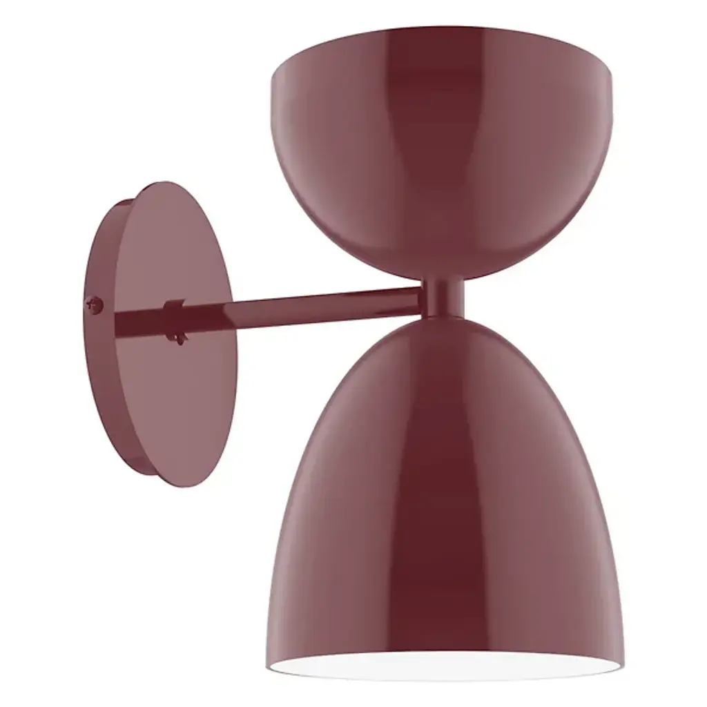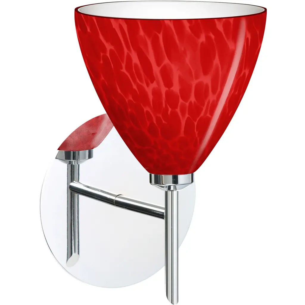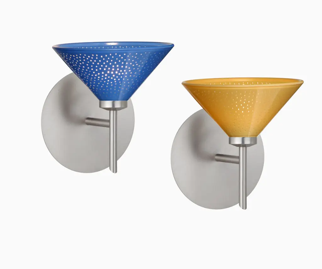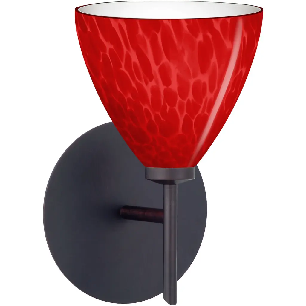 The Kona pendant features a wide cone-shaped glass, that demonstrates contemporary sensibilities. Our Bi-Color glass is a subtly prismatic pressed glass that features a translucent mix of color, where sky blue transitions to a medium red from top to bottom. This décor is energetic and can be used in various ways. When lit this gives off a light that is functional and vibrant. This glossy handcrafted glass uses a process where every glass is consistently produced using a press mold, keeping variations to a minimum. The mini sconce is equipped with a decorative lamp holder mounted to either a low profile round or square canopy. These stylish and functional luminaries are offered in a beautiful brushed Bronze finish.