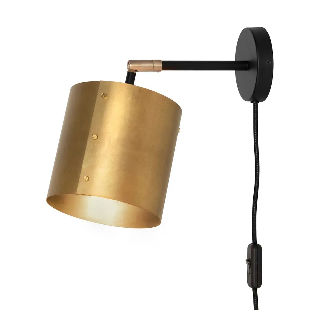 Wall lamp model Svep designed by Konsthantverk and manufactured by themselves. The production of lamps, wall lights and floor lamps are manufactured using craftsman’s techniques with the same materials and techniques as the first models.Materials and color:Black/Raw brass.Dimensions:D 5.90 cm, H 10.23 cm.D 15 cm, H 26 cm.Technical details:Max 60 W E27.The lamps are wired with standard European wiring. Not UL listed.Indoor use and dry locations only.This lamp is wired for Europe, if used in US or any other country the client will need to convert it.Konsthantverk means “Art” and ‘Craftsmanship’, this Swedish company has been manufacturing lamps for nearly one hundred years. They do all the process: milled, drilled, formed and finished. For several years they ran through its own glassworks in Småland for the manufacture of his lamps glass.They have an entire collection for consumers, but they also produce special products as street lighting on Biblioteksgatan in Stockholm or the ceiling lighting at the Kennedy Center in Washington.The Konsthantverk lamps are honest about their dedication to materials and their process, a lamp made by them is a true handicraft. Their creations embody simplicity and careful consideration, where materials and design are united.Each lamp from Konsthantverk has in itself a part of Swedish History since 1921.