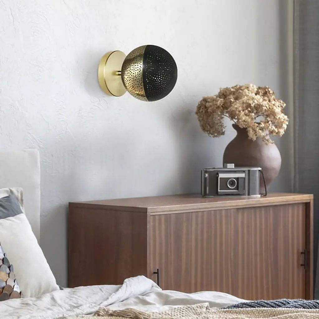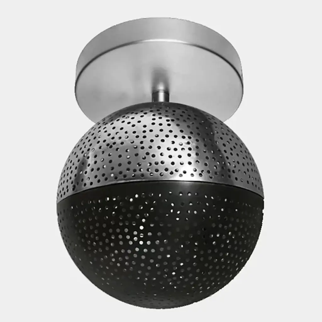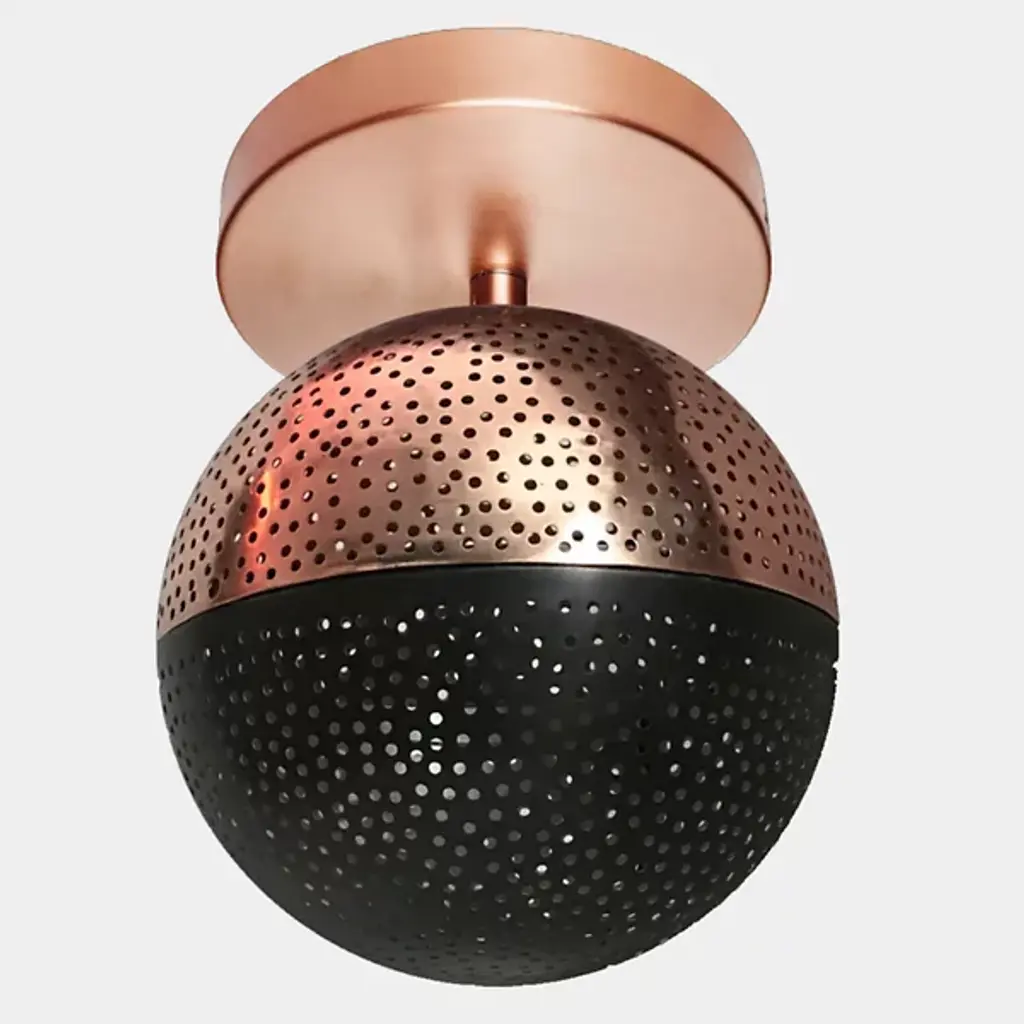 Live in luxury with the Kora Wall / Ceiling Light by Dounia Home. Metal has been finely worked into the form of a globe-shaped encasement. This globe’s surface has been neatly pierced, giving this fixture a look of intricacy. Your pendant’s casing contains an incandescent bulb that diffuses light through the pendant’s piercings to give your home a pleasant glow. Your light fixture has the capability to function as either a wall sconce or a ceiling light. Whichever way you wish to enjoy your light fixture, a disc-shaped plate will keep your furnishment well- secured. The Kora Wall / Ceiling light from artisan, Larbi, embodies the fine craftsmanship of the Moroccan design tradition that endures to the present day.