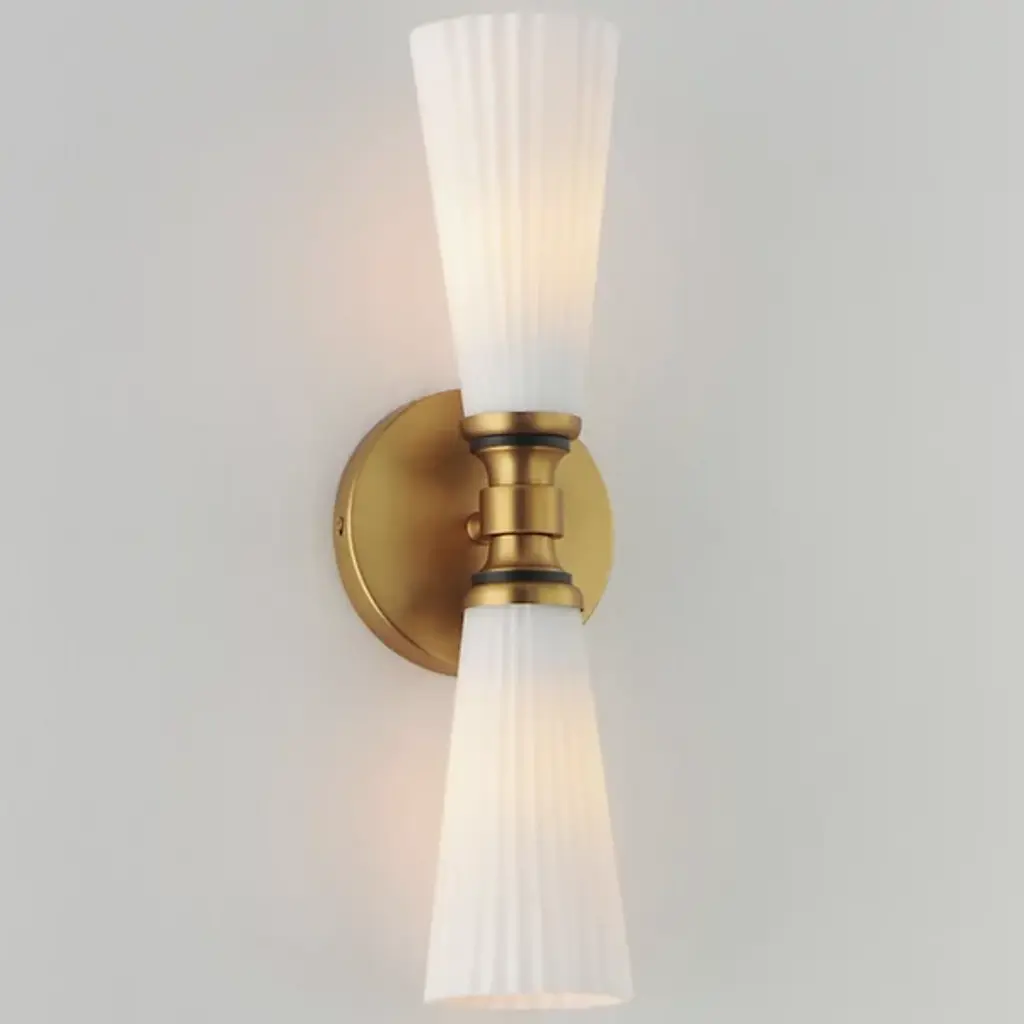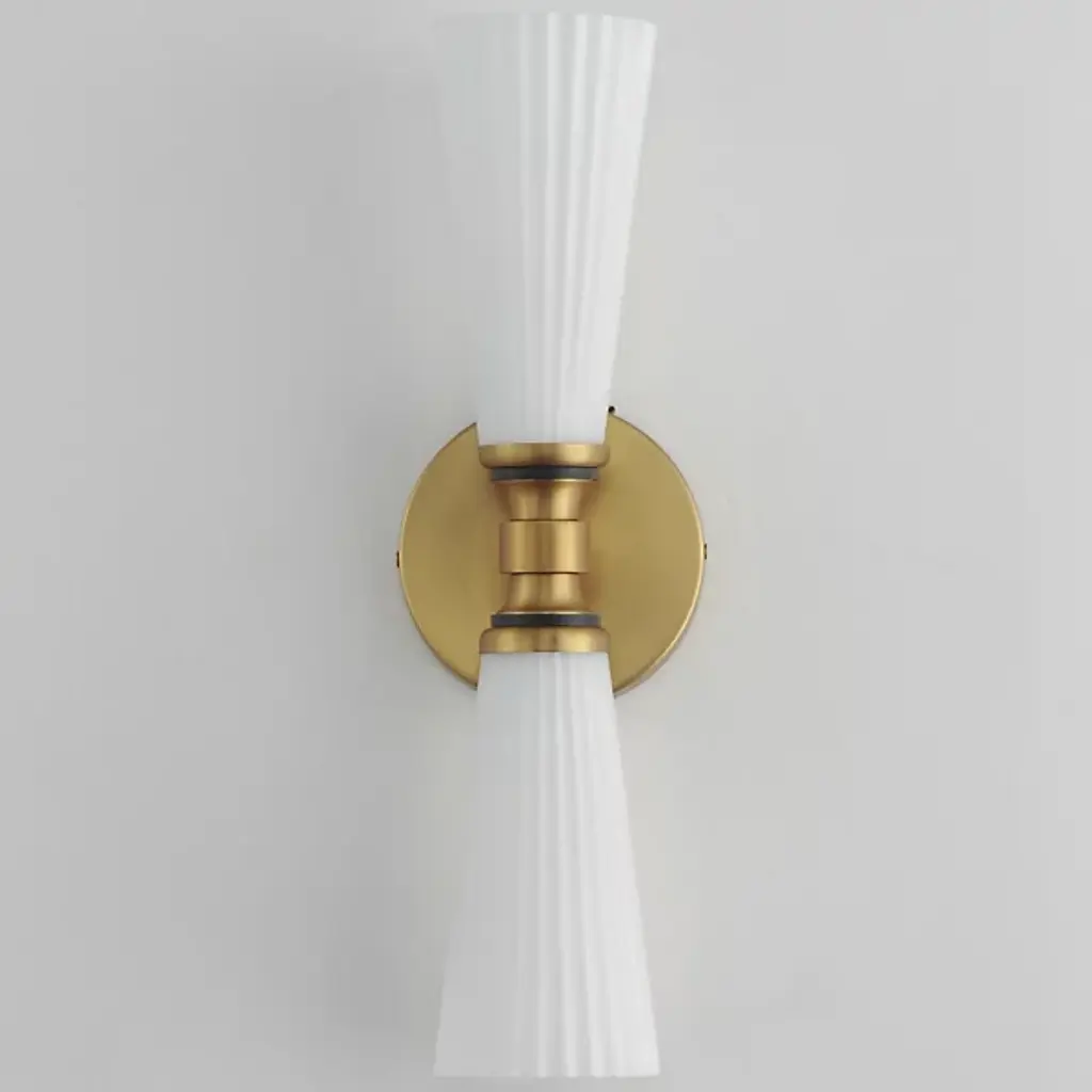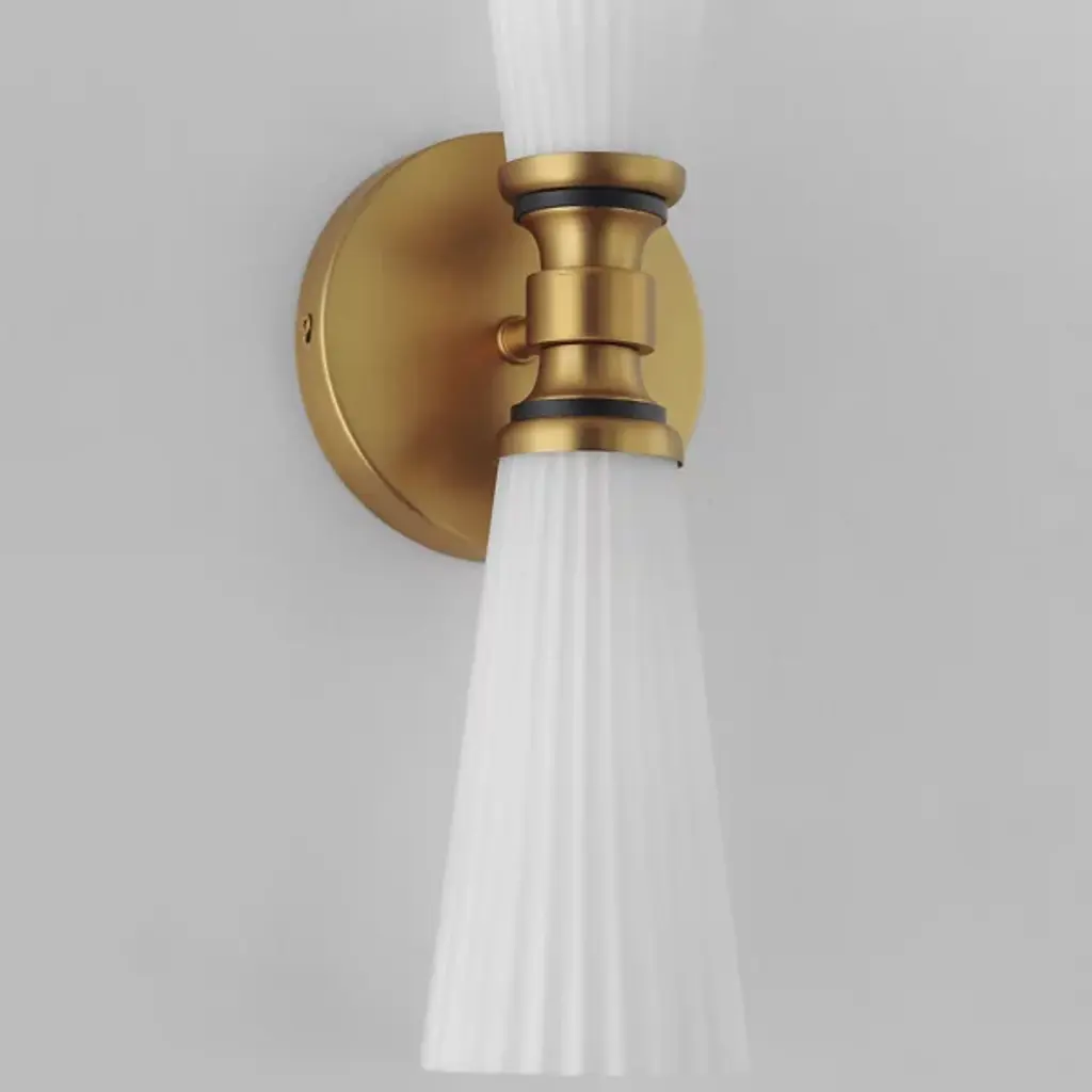 Introducing the Krevat Wall Sconce by Maxim Lighting, a stunning piece featuring fluted satin white glass delicately extending from intricate and slender arms, gently flaring outward. Enhanced by the contrasting finishes of Natural Aged Brass and Matte Black, this fixture exudes character, marrying simplicity with elegance. Designed to seamlessly transition between modern and traditional spaces, this chandelier offers versatility and timeless charm, making it an ideal choice for adding sophistication to any interior setting.