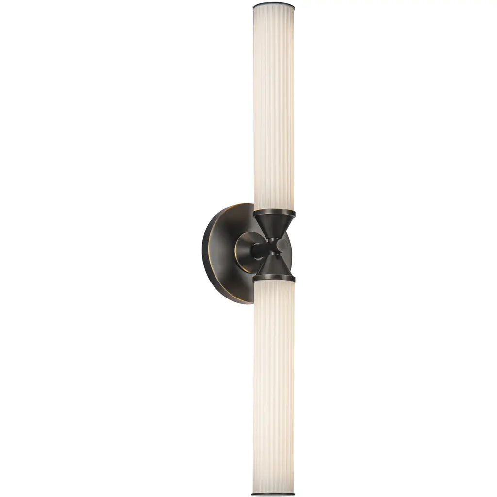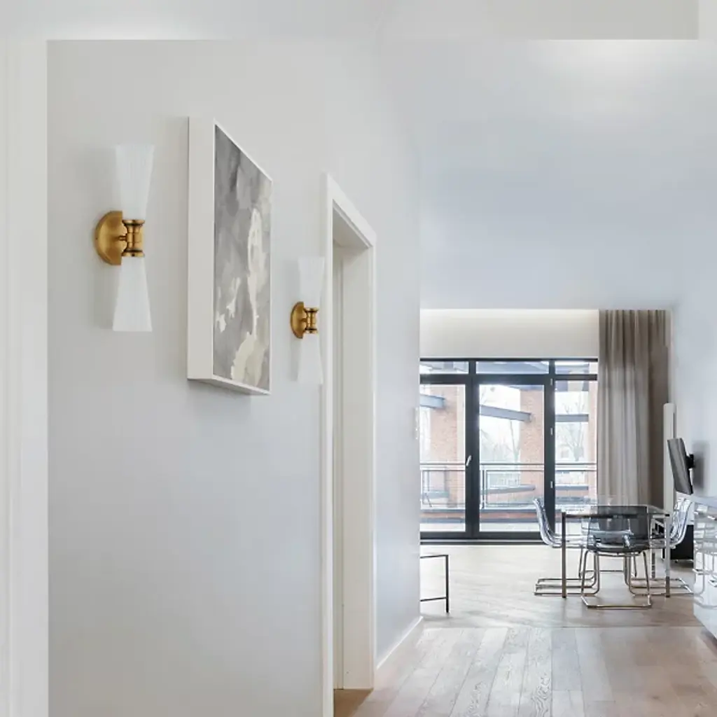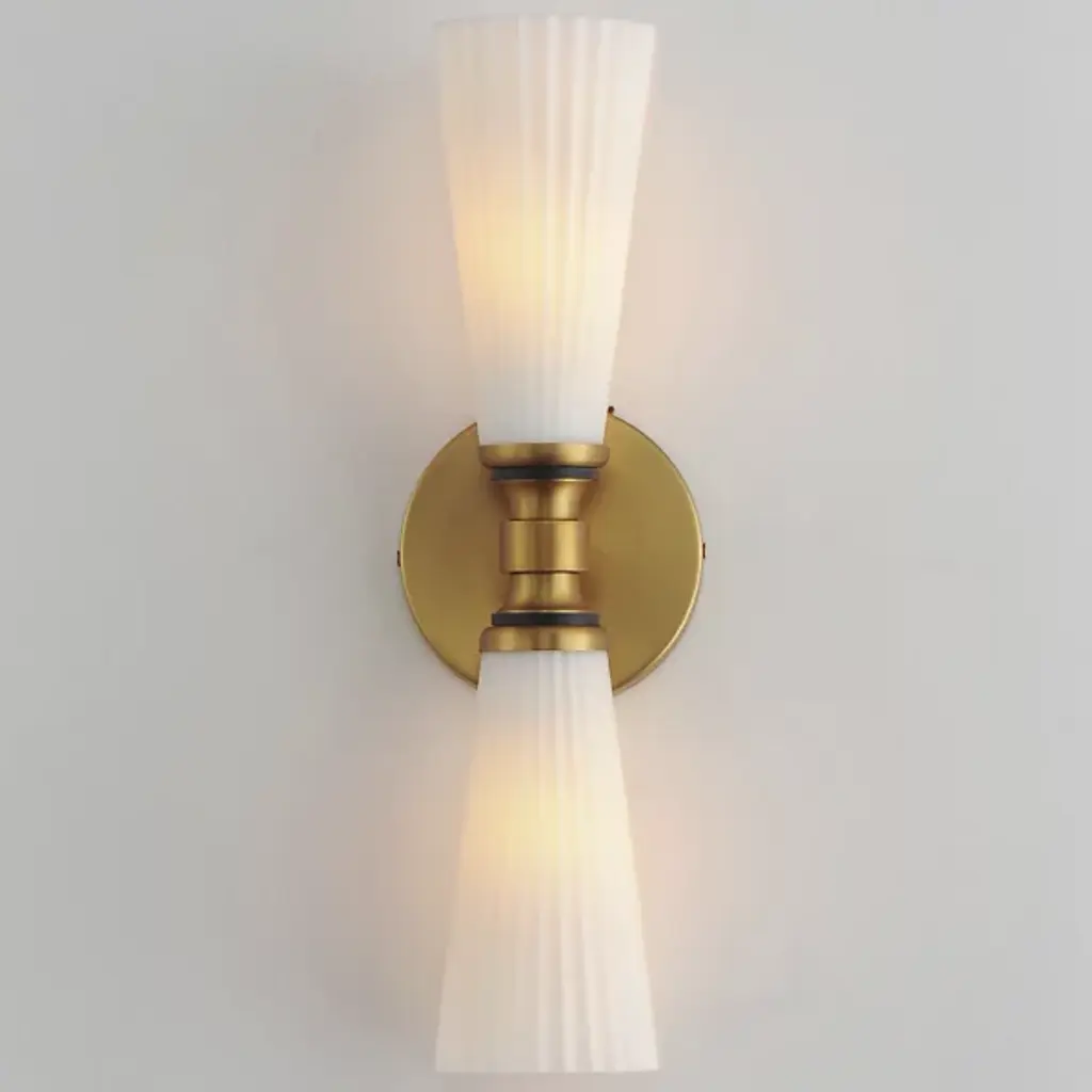 Introducing the Krevat Wall Sconce by Maxim Lighting, a stunning piece featuring fluted satin white glass delicately extending from intricate and slender arms, gently flaring outward. Enhanced by the contrasting finishes of Natural Aged Brass and Matte Black, this fixture exudes character, marrying simplicity with elegance. Designed to seamlessly transition between modern and traditional spaces, this chandelier offers versatility and timeless charm, making it an ideal choice for adding sophistication to any interior setting.