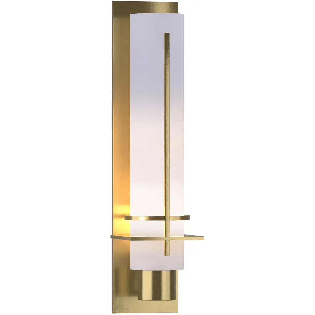 Add an elegant angular note to outdoor wall and indoor hallway surfaces with the simply striking Kulma Outdoor LED Wall Sconce from Kelly Wearstler for Visual Comfort Modern, formerly known as Tech Lighting, It’s a natural brass fixture extending out from a low-profile backplate. The minimalist backplate angles down in a stylized U-shape that reveals itself in a side profile view. LED lamping lines the edge of the U-shape. Any LED glare is blunted by a clear glass diffuser pane that pours out below like clear water and burnishes the metalwork around it with a warm hue.