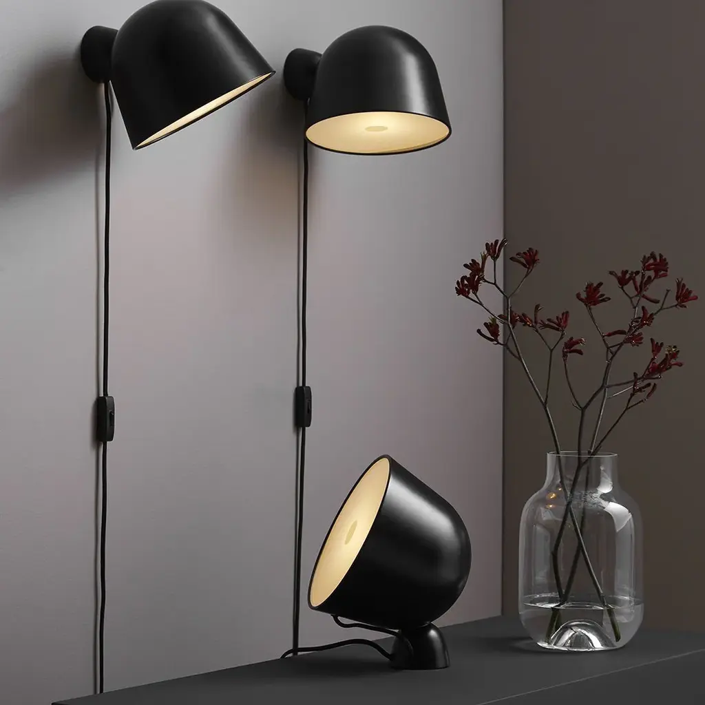 The Kuppi wall light has been revamped while staying true to the original design from 2014. Kuppi means 'cup' in Finnish, which is reflected in the design of the two, different sized cups. The construction allows for easy movement and adjustment of the light, which makes Kuppi ideal as a bedside lamp or in the reading corner. The simple design makes it a minimalistic and sculptural lamp.