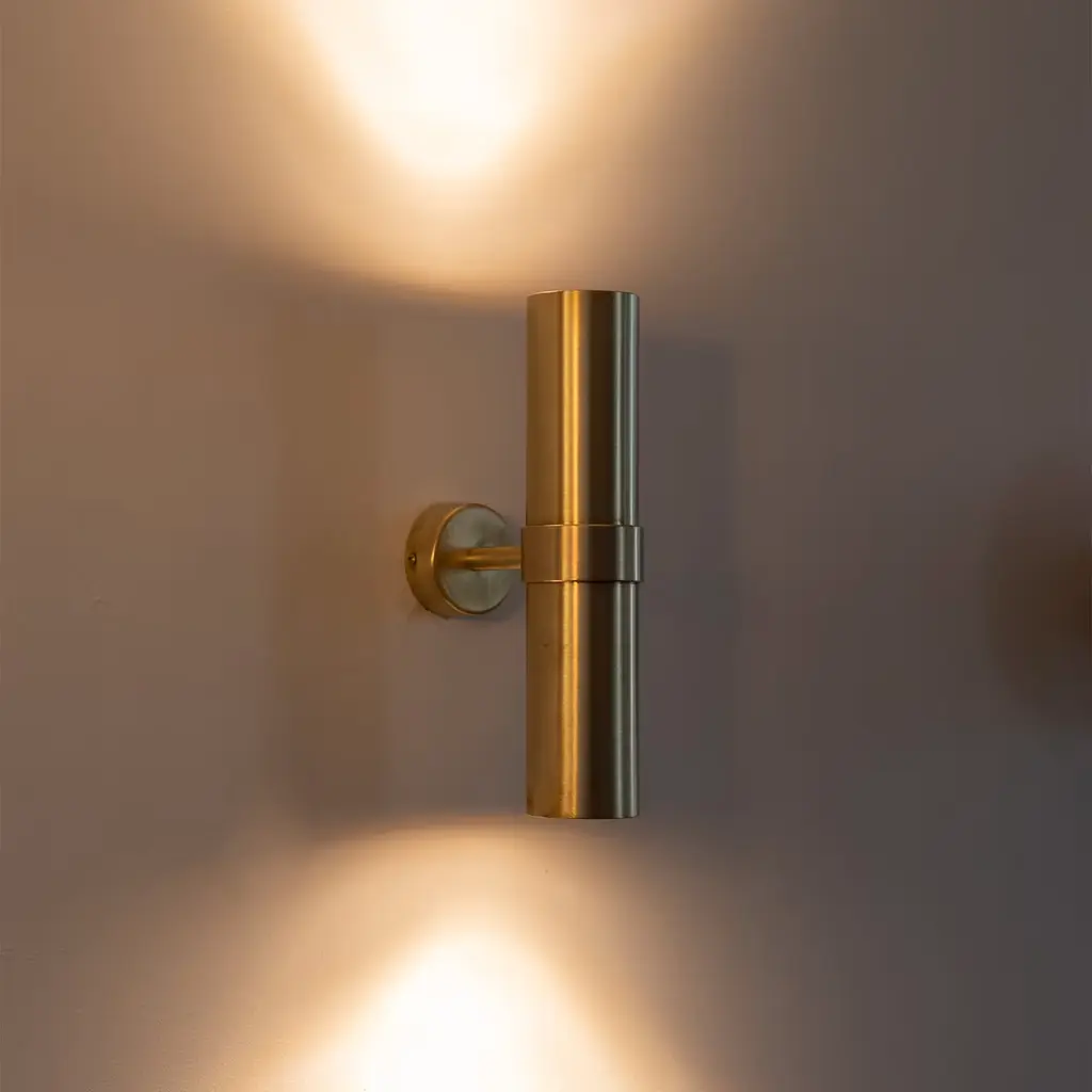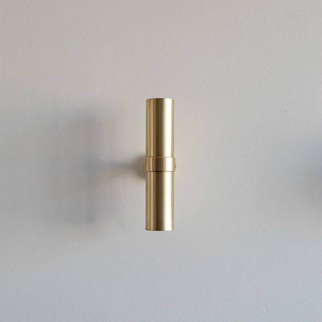 The "Kyle pt2" wall lamp features a sleek cylindrical design inspired by the Greek word "kylindros." Its minimalist form integrates seamlessly into modern and contemporary interiors. The fixture includes a bulb. This wall lamp combines understated elegance with functional lighting, making it a refined choice for a variety of settings. Also available in a variety of finishes to suit different design preferences. Please contact the Concierge for more information.