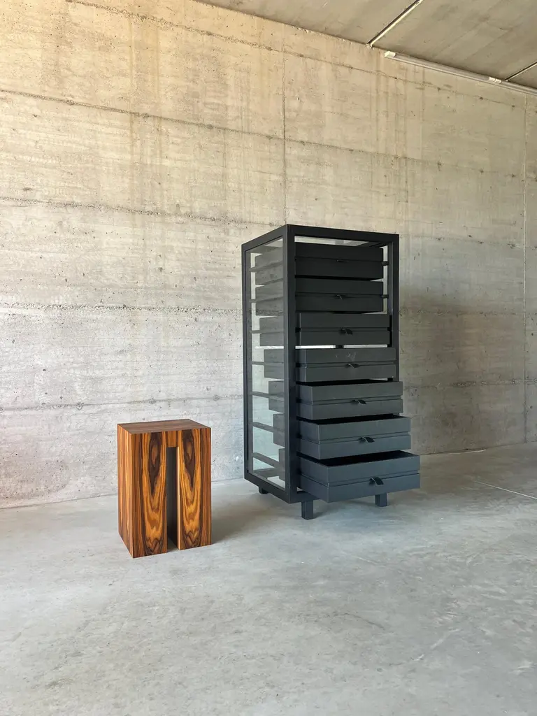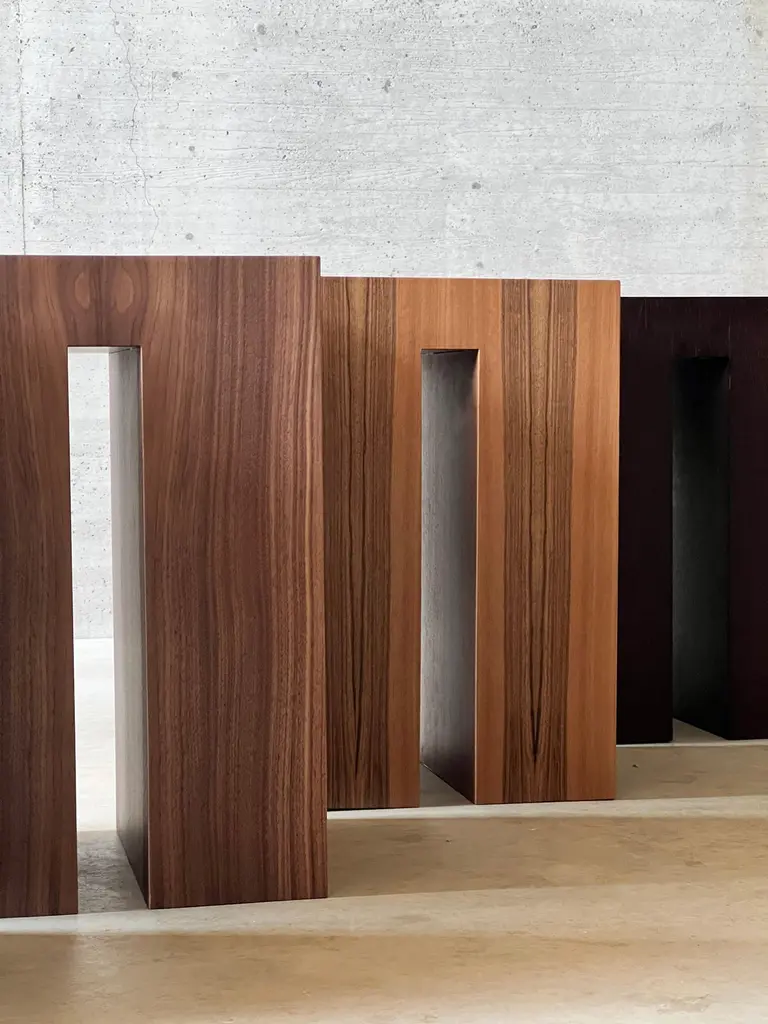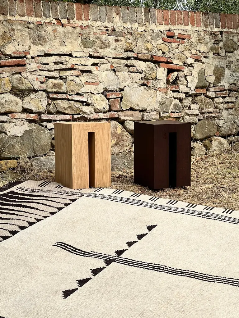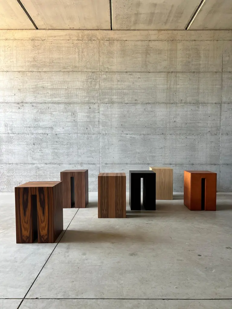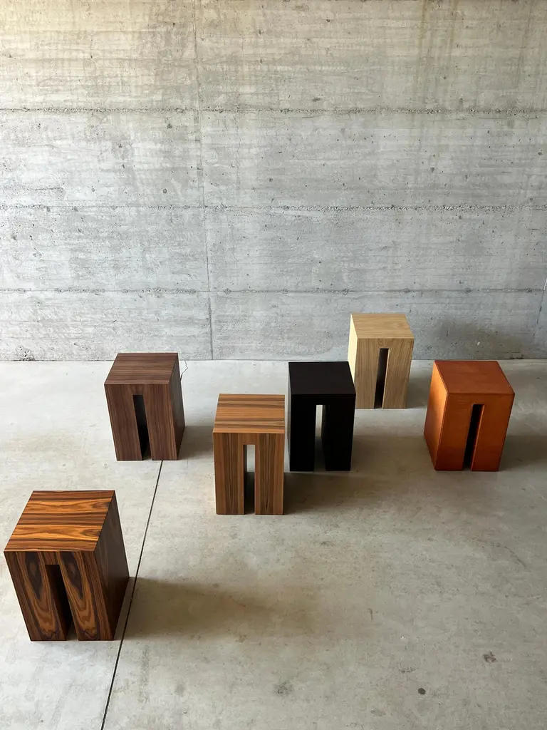 "Kyo-Co" is a stool, designed by Nathalie Orlandi and manufactured by Dessie', made in plywood and natural oak, natural wengè, Santos rosewood or walnut veneered.Indoor use only.Available in different options:- natural oak- Italian walnut- American walnut- Santos rosewoodDIMENSIONS:D. 11.8", W. 11.8", H. 17.7"DESSIE' company's mission is putting a contemporary spin on the old tradition of cabinet-making, in order to offer pieces of furniture ready to get people excited and to satisfy aesthetic and functional values of the contemporary way of living. Dessie' was started during 1990s and now proposes a collection of pieces of furniture inviting to discover a sophisticated and elegant design, an unique style where different influences merge, and to re-create a simple and refined design atmosphere for unconventional people who are freely looking for essential and high quality pieces.A collection, including tables, small tables, writing desks, console tables, bedside tables, chairs, bookcases, dressers, cabinets, cupboards, upholstered pieces of furniture and lamps, which was created having in mind an essential style and a careful attention to recent trends. Harmony of forms and care for high quality and rational design, attentively studying any detail, are some of key features of production by Dessie', which has been always reworking the legacy from the tradition by means of a strongly contemporary design language.The aim is to create a forward-looking style which anyway doesn't lose the value of the past as a main feature, in order to give any setting an original charme, indifferent to passing fads. Hence here's a formal language which uninterruptedly takes care of details and precious finishes, while experimenting expressive capabilities of the best materials: precious woods, steel, leather, natural fibers, etc. Flexibility and possibility of customizing any piece in order to offer a "tailor-made" production is one of key design criteria followed by Dessie'. Dessie' established a close cooperation with some famous international designers, like the Catalan Jaime Tresserra, who designed "Tecnica" collection. Besides its own production, Dessie' has been taking the assignment of selecting products by some Spanish companies (Andreu World, Carpyen, Dae, Indecasa, Mobles 114, Punt Mobles and Tresserra) for many years, creating an unique and refined collection featuring bookcases, sofas, lamps, wall lights, chairs, armchairs, rugs, outdoor pieces of furniture, etc.
